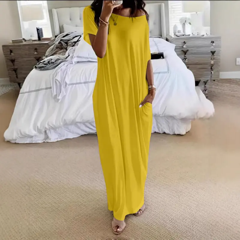 SHOWITTY 2-Pack Women's Casual T-Shirt Loungewear Dresses with Pockets Plus Size Short Sleeves Pajama Dress- Breathable Lightweight Fit for Summer Outings Everyday Wear