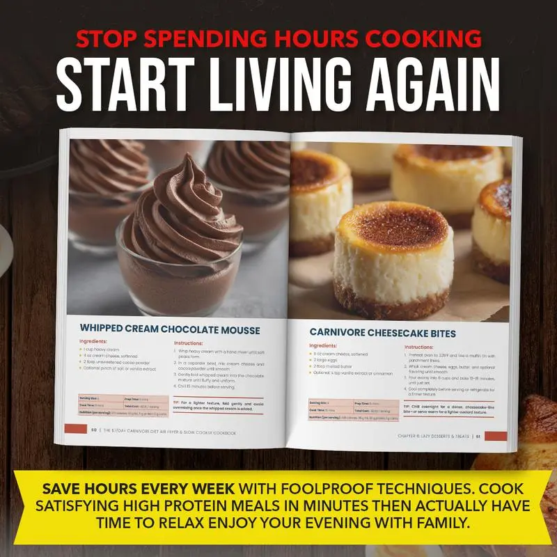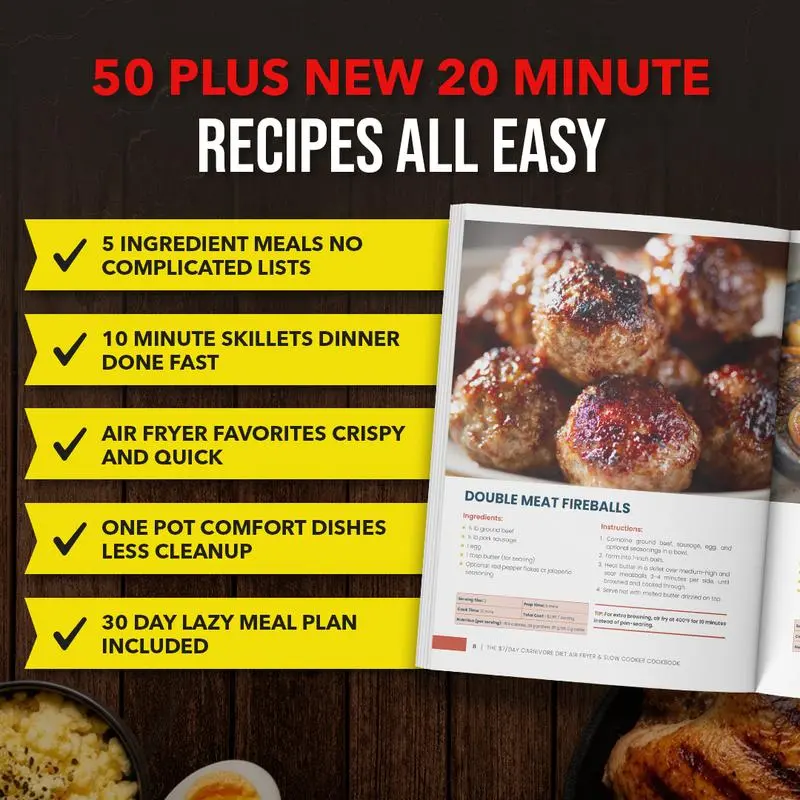 Packed With 50+ All-New 20-Minute Carnivore Recipes, a 30-Day Lazy Meal Plan, and simple time-saving bonuses—this third installment in the bestselling Carnivore series makes meat-based eating easier, faster, and more realistic than ever. From satisfying 5-Ingredient Skillets to crispy air fryer favorites and rich comfort classics, every recipe is built for busy people who want results without spending hours in the kitchen.
