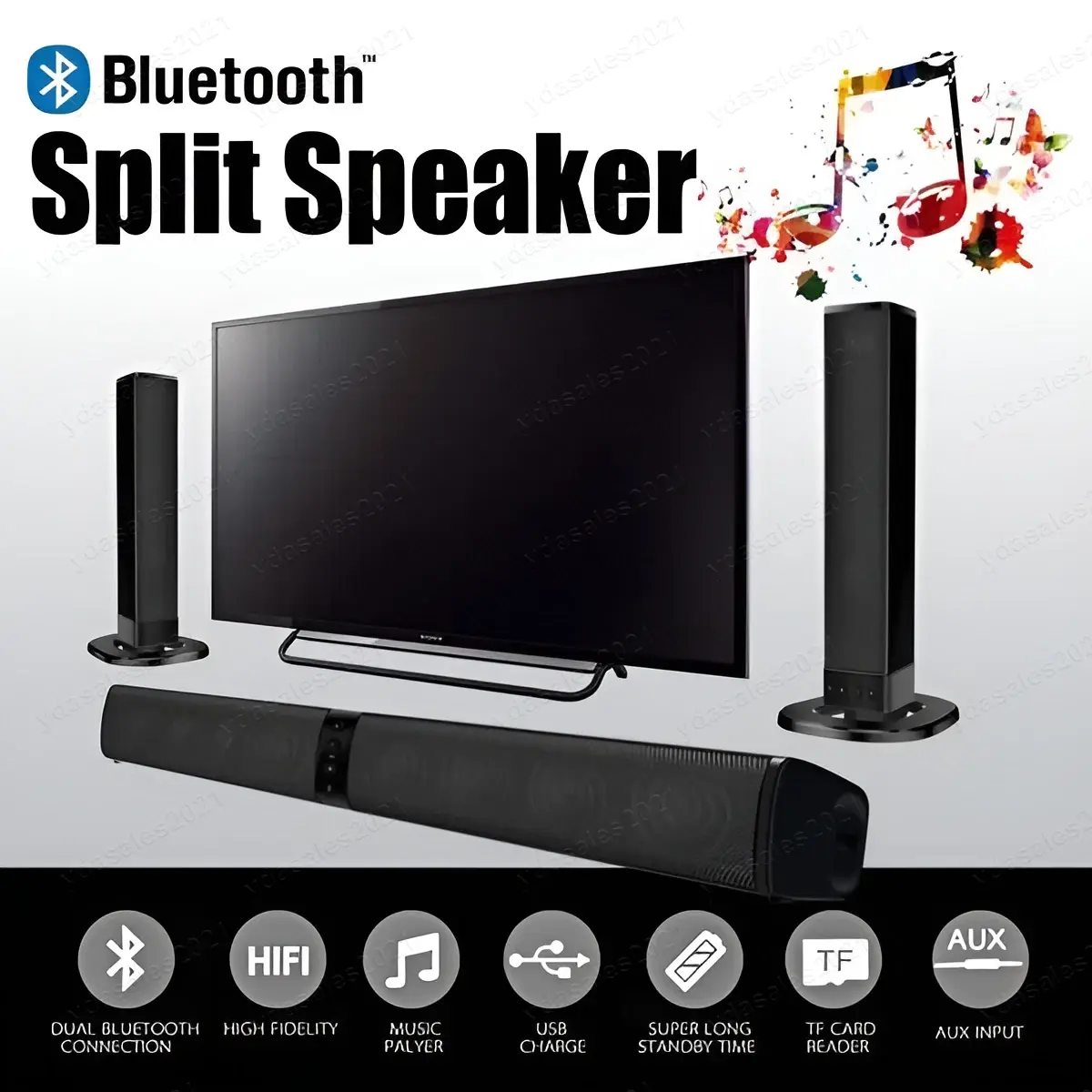 Stereo Bar Speaker for Smart TVs, 2-in-1 Wireless Subwoofer Speakers, Home Theater Systems, Bass Enhancement, Wireless Connectivity, TF, AUX, FM, RCA, TWS, Built In 2000mAh Rechargeable Battery