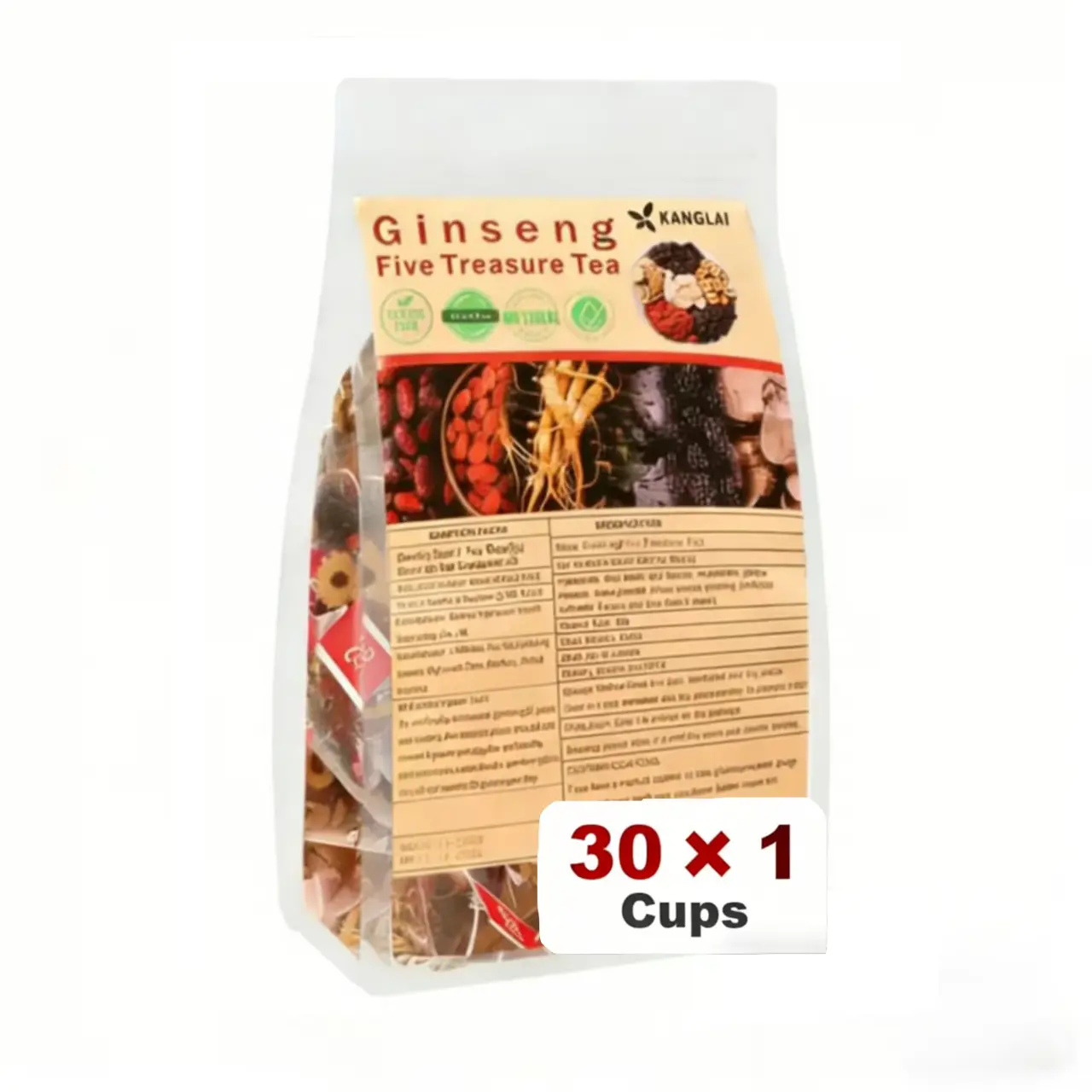 Ginseng Five Treasure Tea 3PCS 5g x 30 Bags x 3 Natural Herbal Kidney Support for Men & Women Traditional Chinese Wellness Detox Cleanse Organic Daily Healthy Tea Value Pack