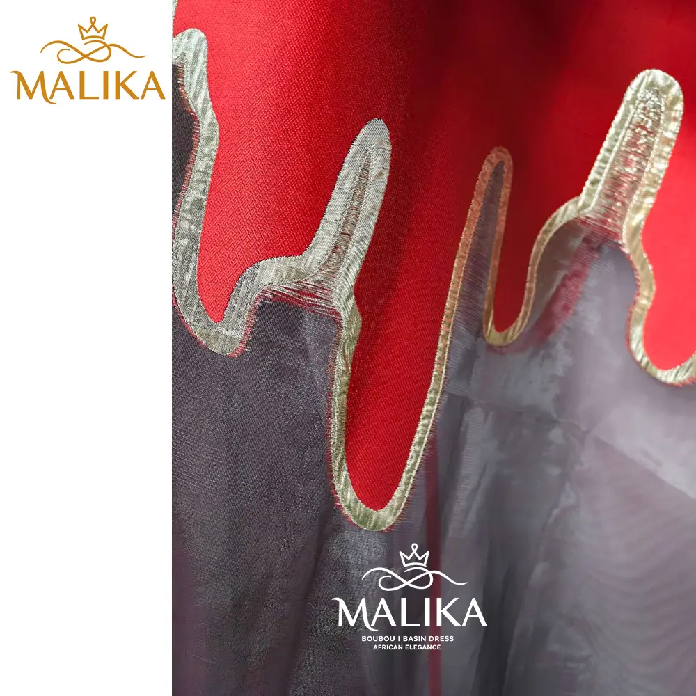 2pcs Set East Middle Red Brocard Boubou Dress With Strap Lining African Classical Party Dress Plus Size Luxury Long Sleeve