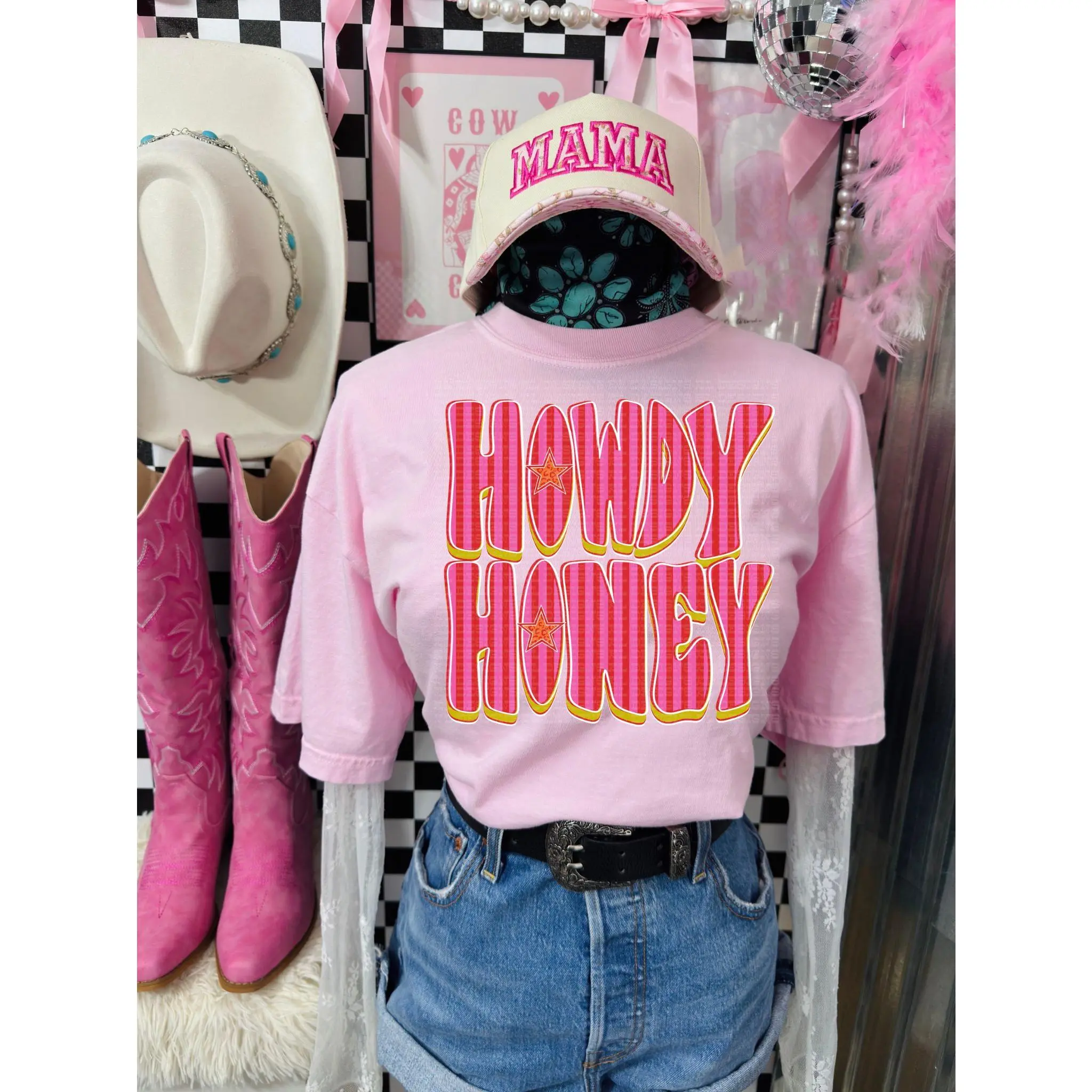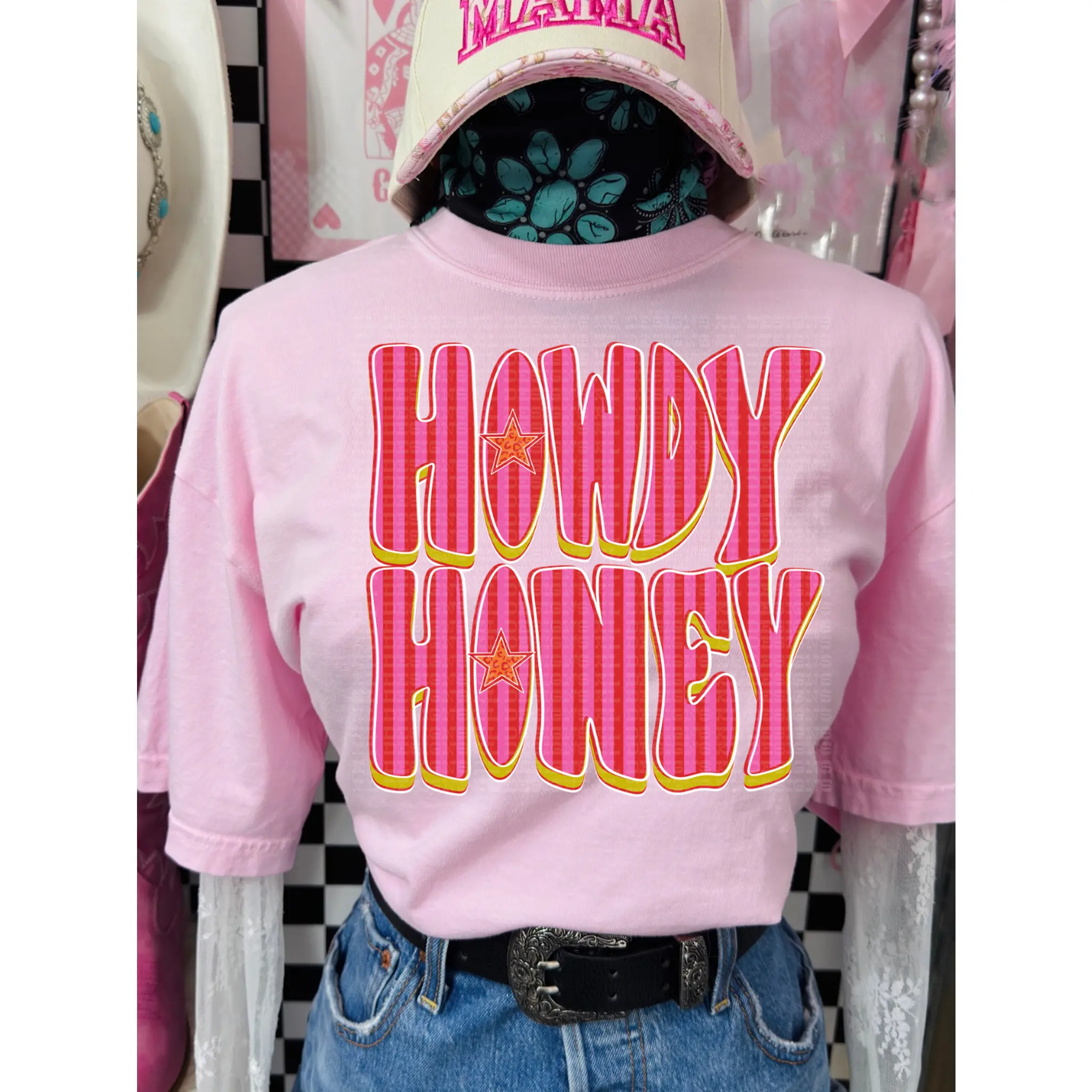 5. Howdy Honey Pink Retro Striped Comfort Colors T-shirt, Western Boutique Rodeo Clothing, Vintage Graphic Tees for Women, Country Concert Wear, Cowgirl Fashion Outfits, Women's Tops, Hoodie, Crewneck Sweatshirt, Tee