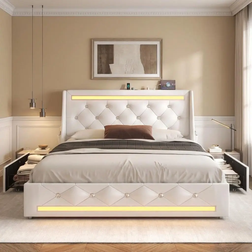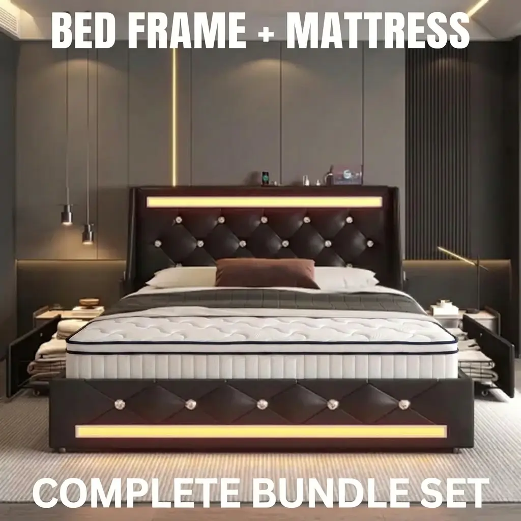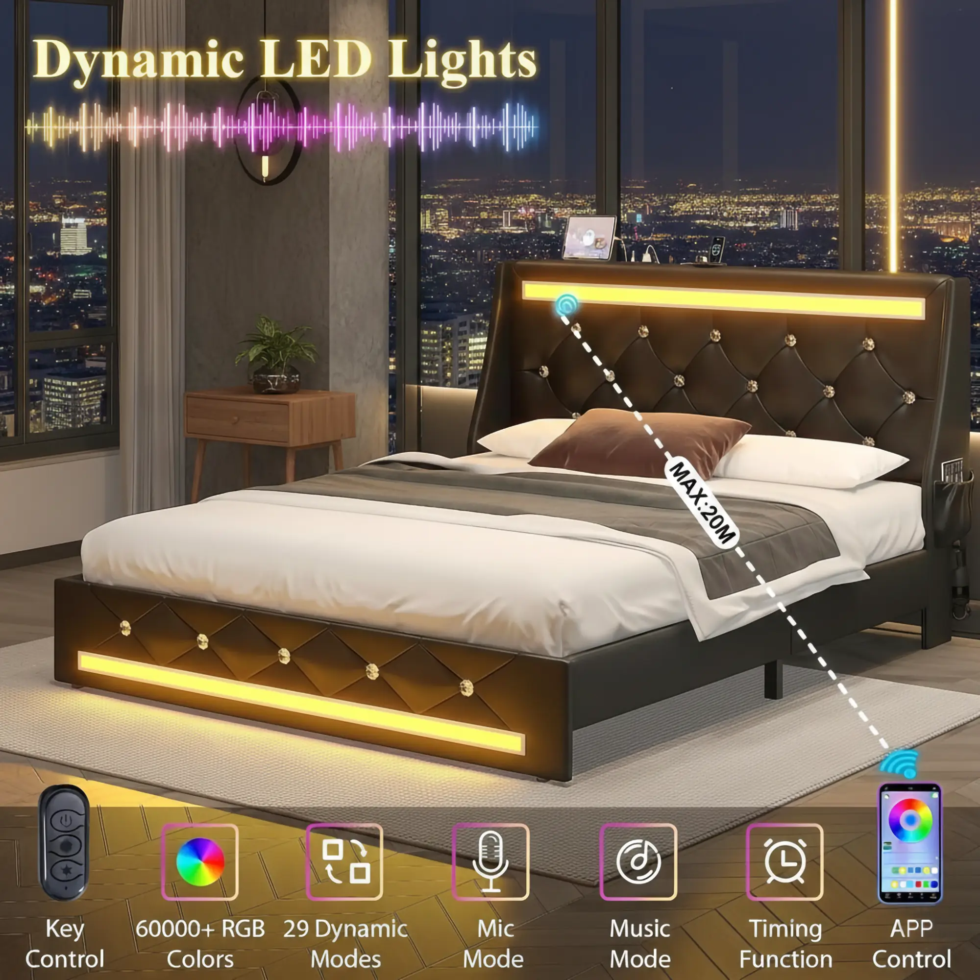 This bed frame is available with or without a mattress, giving you flexible choices to fit your needs. Built-in LED lights on the headboard and footboard offer 60,000 colors and multiple dynamic modes. Easily switch between sleep.