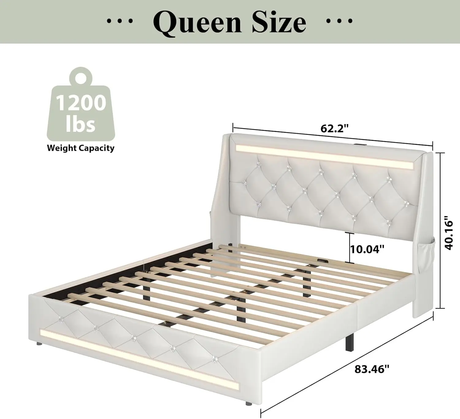 Wrapped in premium faux leather with high-density foam padding, this queen bed frame provides both comfort and durability. The diamond-accented headboard adds a modern.