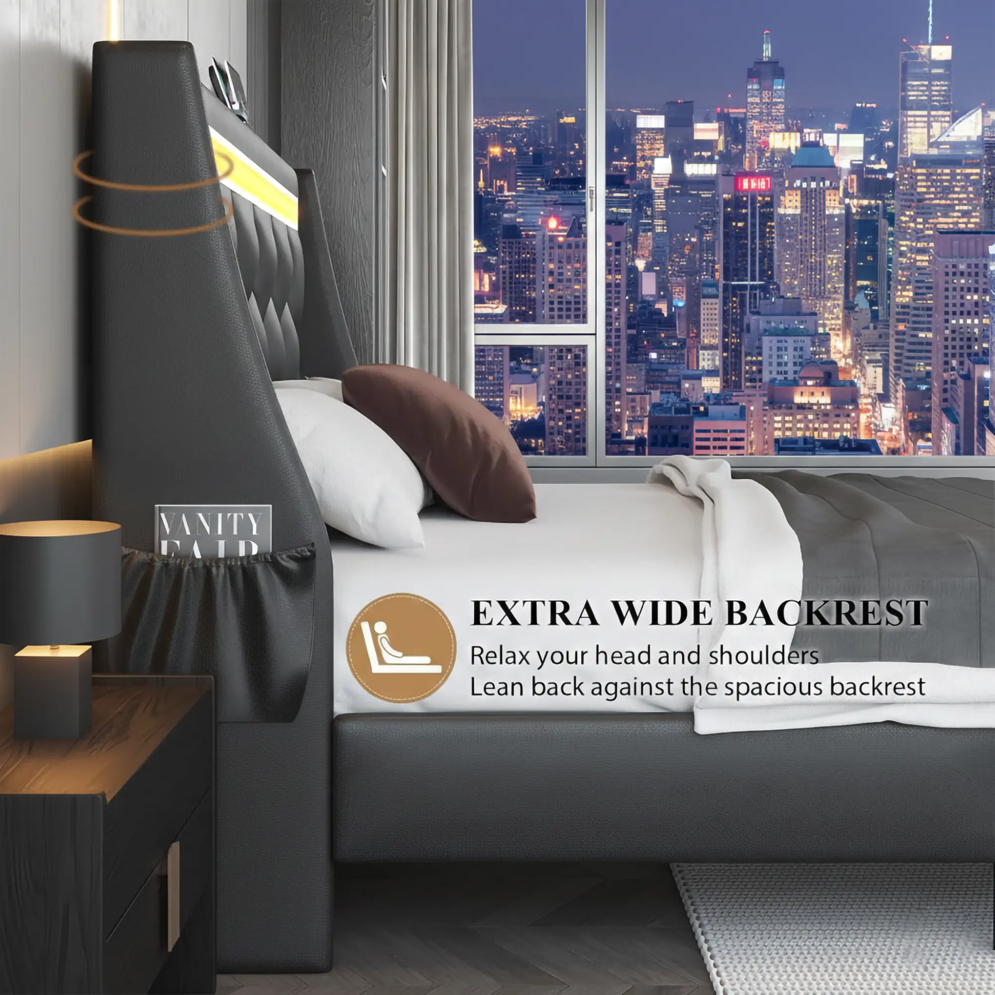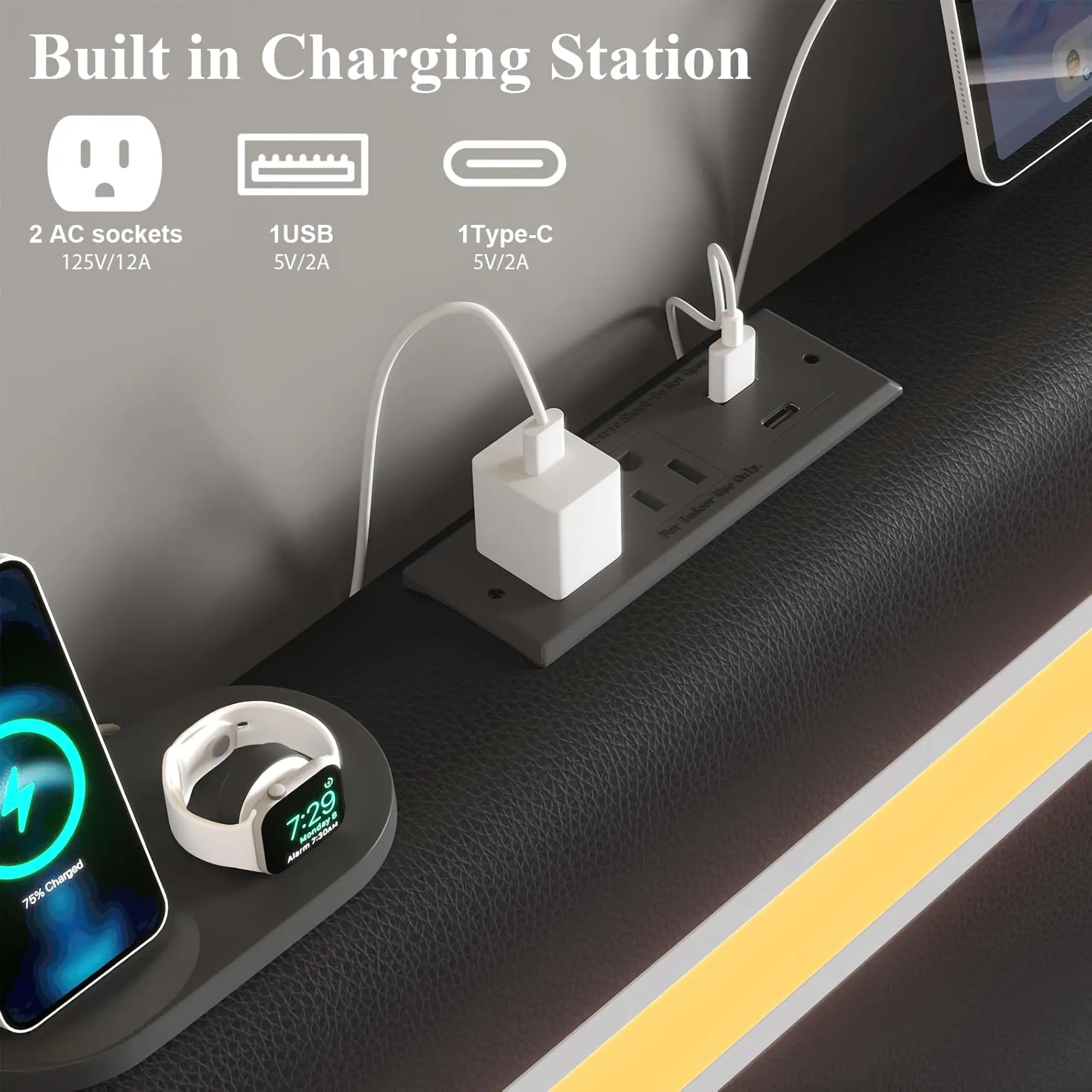 Equipped with a 4-in-1 charging hub (USB + Type-C + 2 AC outlets) in the headboard, this bed frame lets you charge phones, tablets, and more within easy reach—no more low battery before bedtime.