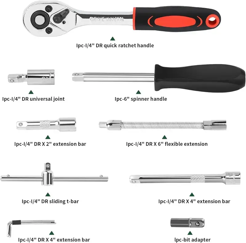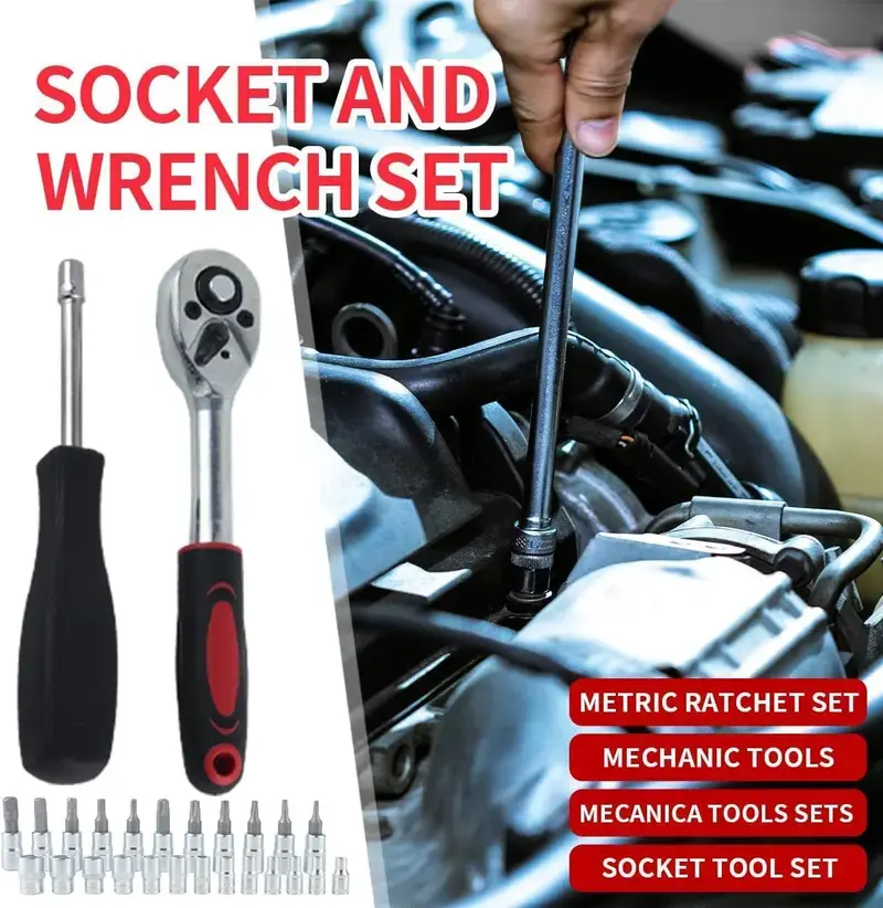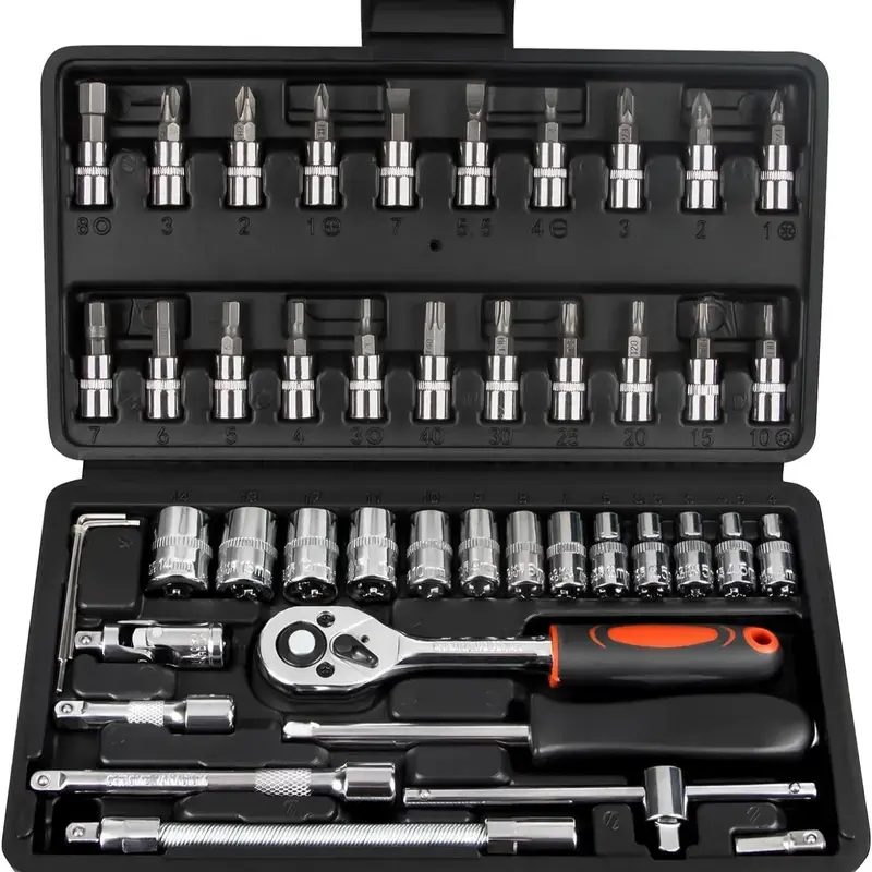 This 46-piece tool kit includes everything you need for efficient repairs and maintenance. From ratchets to bit sockets, this set is perfect for car, bicycle, and motorcycle repairs. The kit also includes a metric socket set and extension bar for versatile use. ️