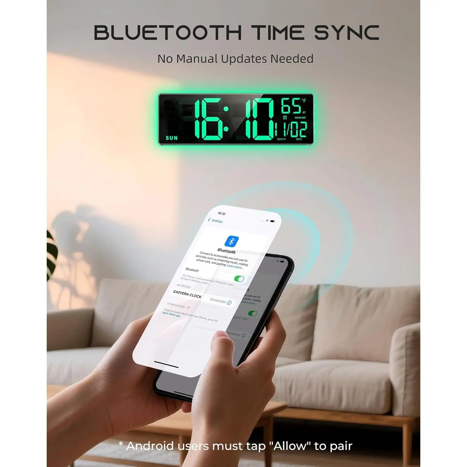 16.5" Large Digital Wall Clock with BT Sync, RGB Lights with 11 Scenes Mode Remote Control, Dual Alarms with Big LED Display, Auto DST, Temperature for Classroom Gaming