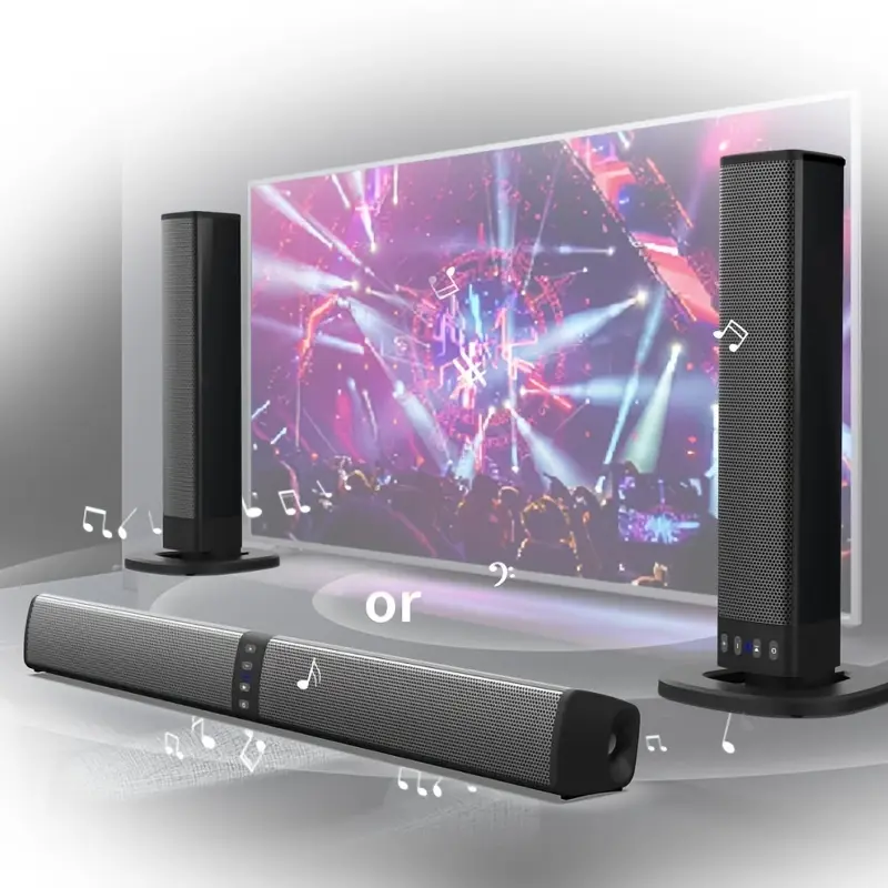 Separable Home Theater Wireless Surround TV Soundbar System with 4 Subwoofers TF/AUX/FM/RCA/TWS, 2in 1 Detachable TV Sound Bar for Computer, TV And Music Entertainment