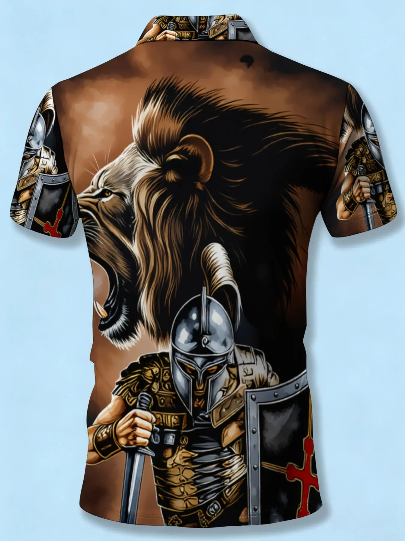 Men's Short Sleeve Polo Shirt with Lion Knight Pattern, 3D Printed Trendy Casual Top, Summer Personalized Men's Clothing