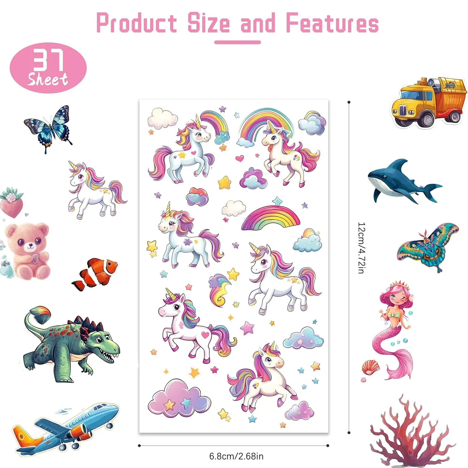 Tattoos for Kids, 350+ Mixed Styles (37 Sheets) Temporary Tattoos Stickers Set Gift for Girls and Boys, Space Dinosaur Animals Butterfly Tattoos for Kids Birthday Party Supplies