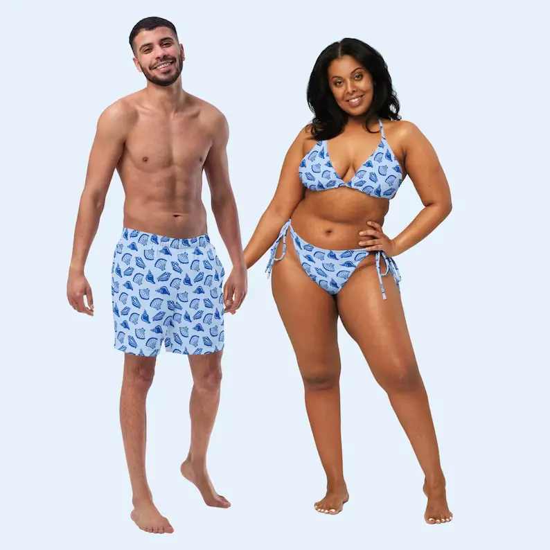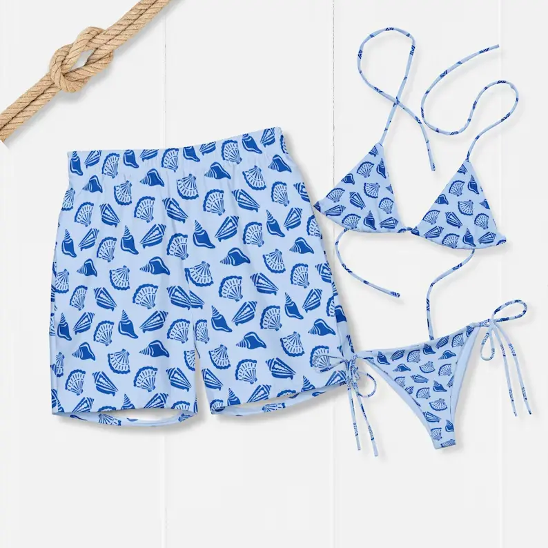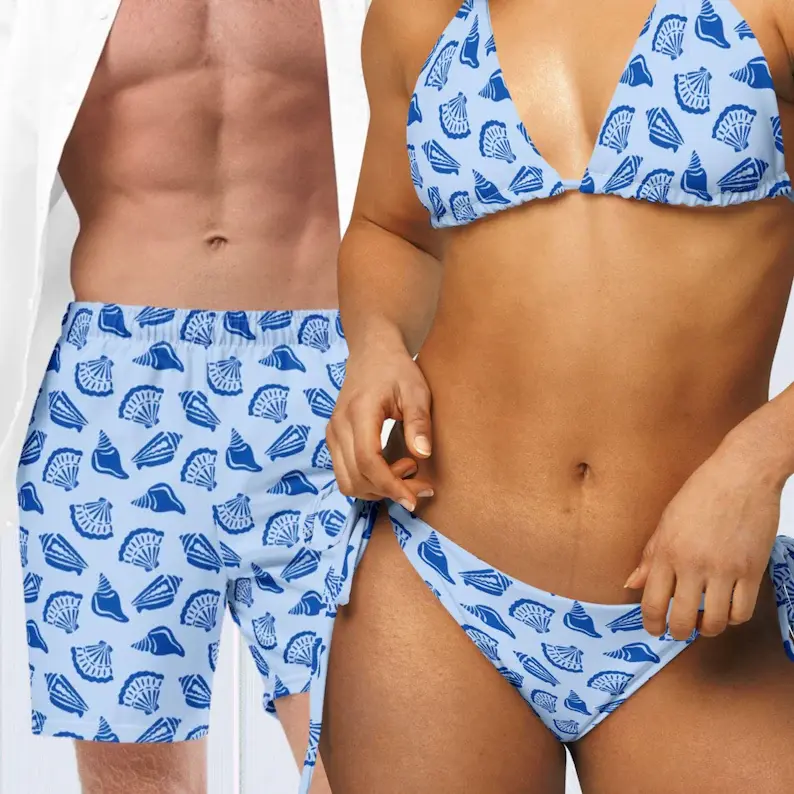 Matching Sea Shell Couples Swimsuits: His and Hers Honeymoon Beachwear