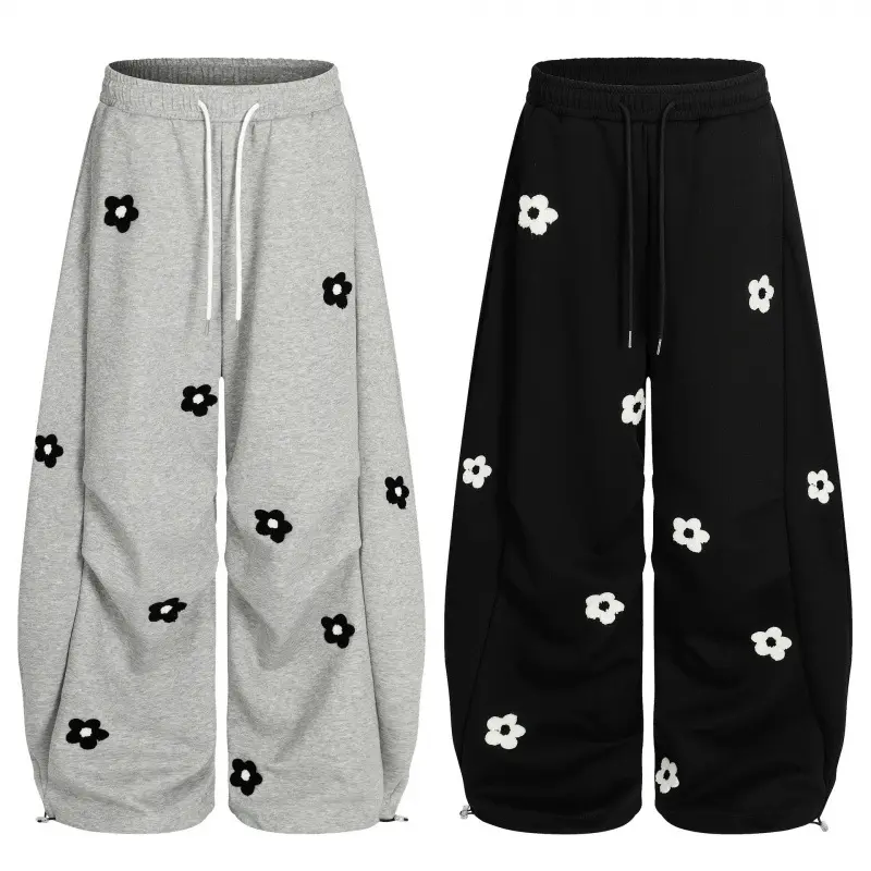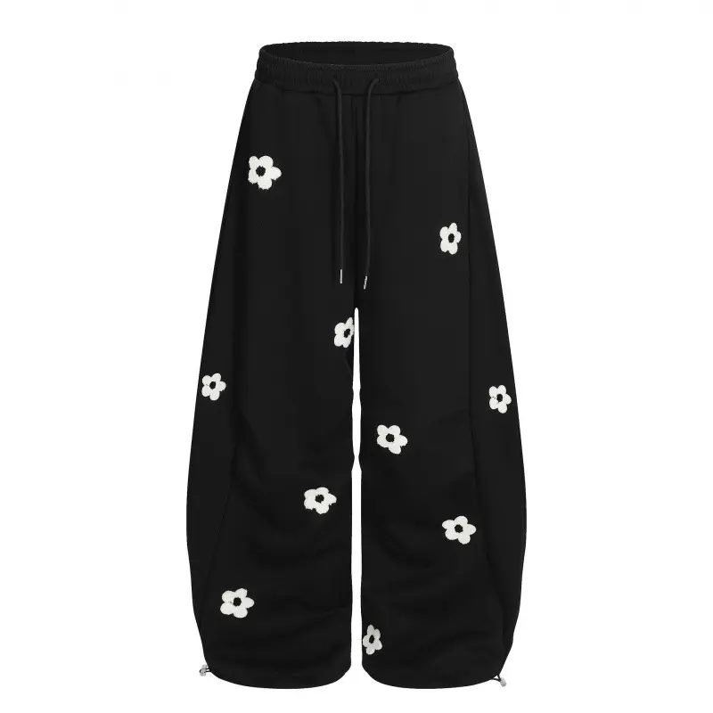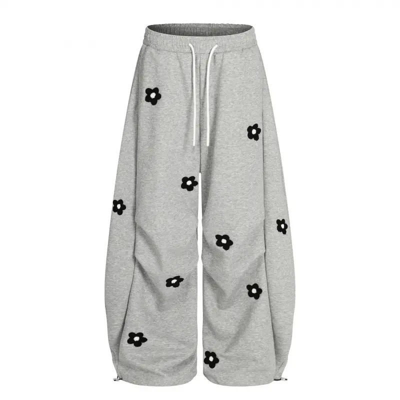 2026 Spring Collection Sweet and Cool Style Floral Embroidery Drawstring Loose Slimming Casual Sports Pants Wide-Leg Sweatpants for Women Menswear Trouser