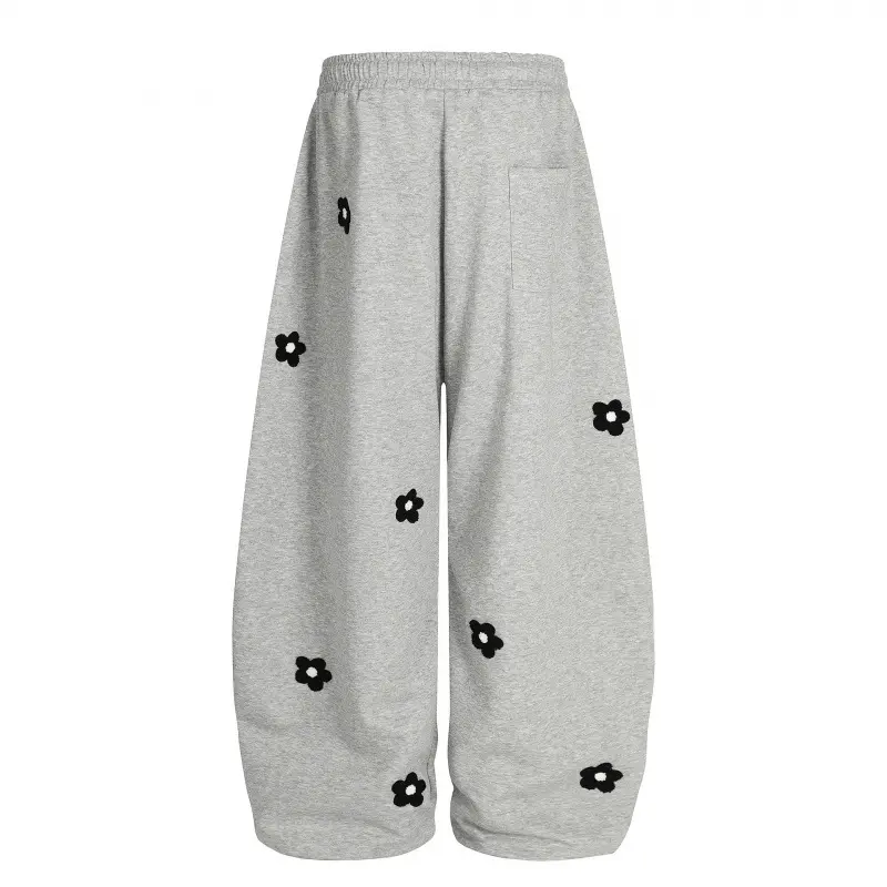 5. 2026 Spring Collection Sweet and Cool Style Floral Embroidery Drawstring Loose Slimming Casual Sports Pants Wide-Leg Sweatpants for Women Menswear Trouser