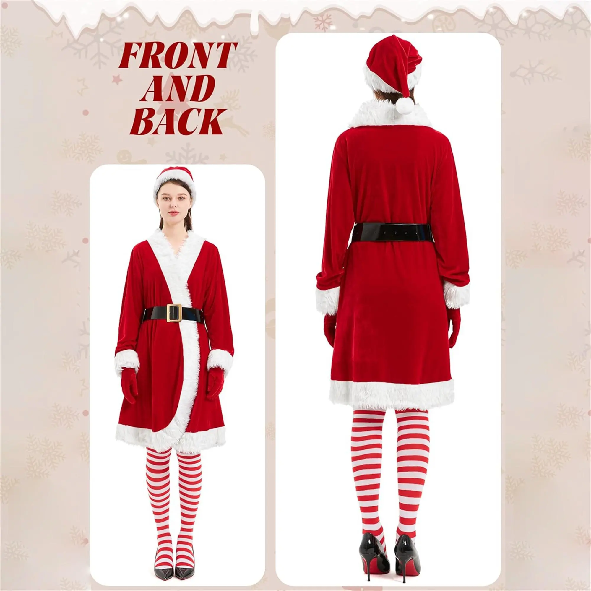 Women Christmas Santa Dress Plush Patchwork Contrast Color Long Sleeve Wrap V-Neck Dress Size (cm) S Length: 88Bust: 95 Sleeve: 56Shoulder: 39 Waist: 72 M Length: 90Bust: 100Sleeve: 57Shoulder: 40 Waist: 76 L Length: 92Bust: 105Sleeve: 58Shoulder: 41.5Waist: 82 XLLength: 94Bust: 110Sleeve: 59Shoulder: 43 Waist: 88 Size (inch) S Length: 34.65Bust: 37.4 Sleeve: 22.05Shoulder: 15.35Waist: 28.35 M Length: 35.43Bust: 39.37Sleeve: 22.44Shoulder: 15.75Waist: 29.92 L Length: 36.22Bust: 41.34Sleeve: 22.83Shoulder: 16.34Waist: 32.28 XLLength: 37.01Bust: 43.31Sleeve: 23.23Shoulder: 16.93Waist: 34.65 Specification: Materials: 100% Recycled Polyester Fiber Style: Cosplay Pattern: Contrast Color Color: Burgundy Package Included 1 * Dress Note: 1. Please understand there may be a 1-2 cm deviation exist. 2. Due to the lighting and monitors, there is a slight difference between the picture and the real item.
