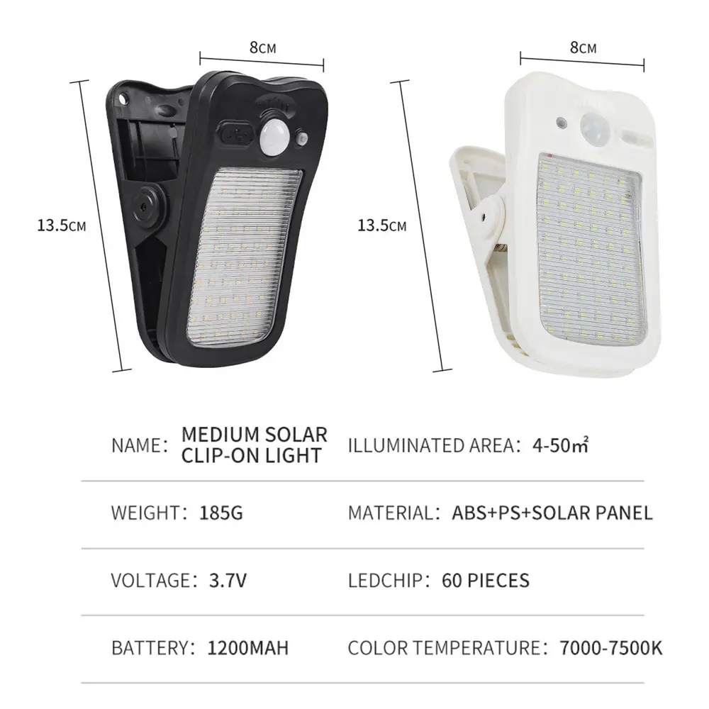 Clamp Solar Light, 60 LED Solar Motion Sensor Clamp Light 3 Modes, IP65 Waterproof Portable Clamp Light for Yard Fence