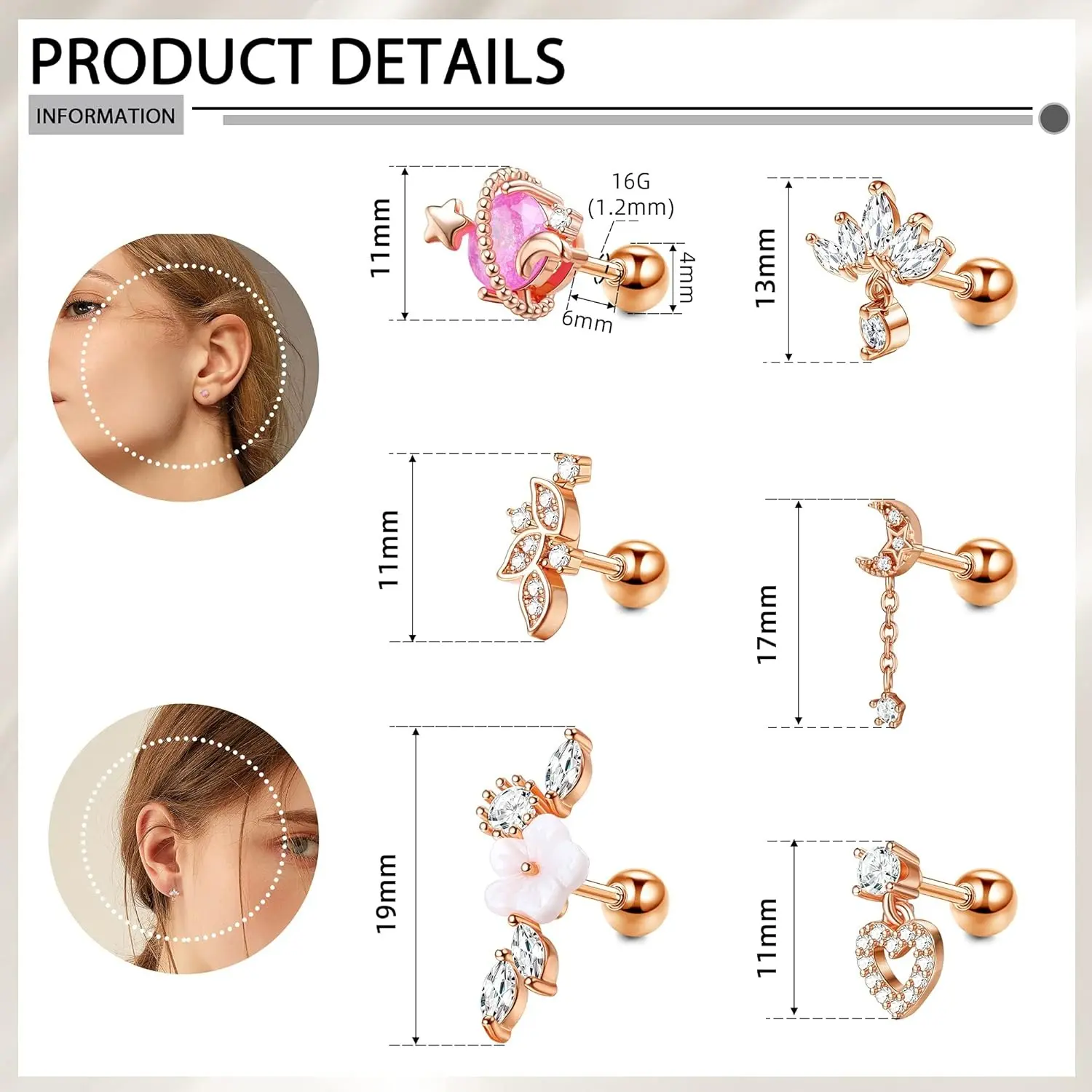 ·3 Different Styles in 1 Pack 🎡3 x Classic Studs: Simple & chic.3 x Dangle Studs: For that extra movement and sparkle. ✨3 x Twist Spirals: Unique vibes for your cartilage or helix.