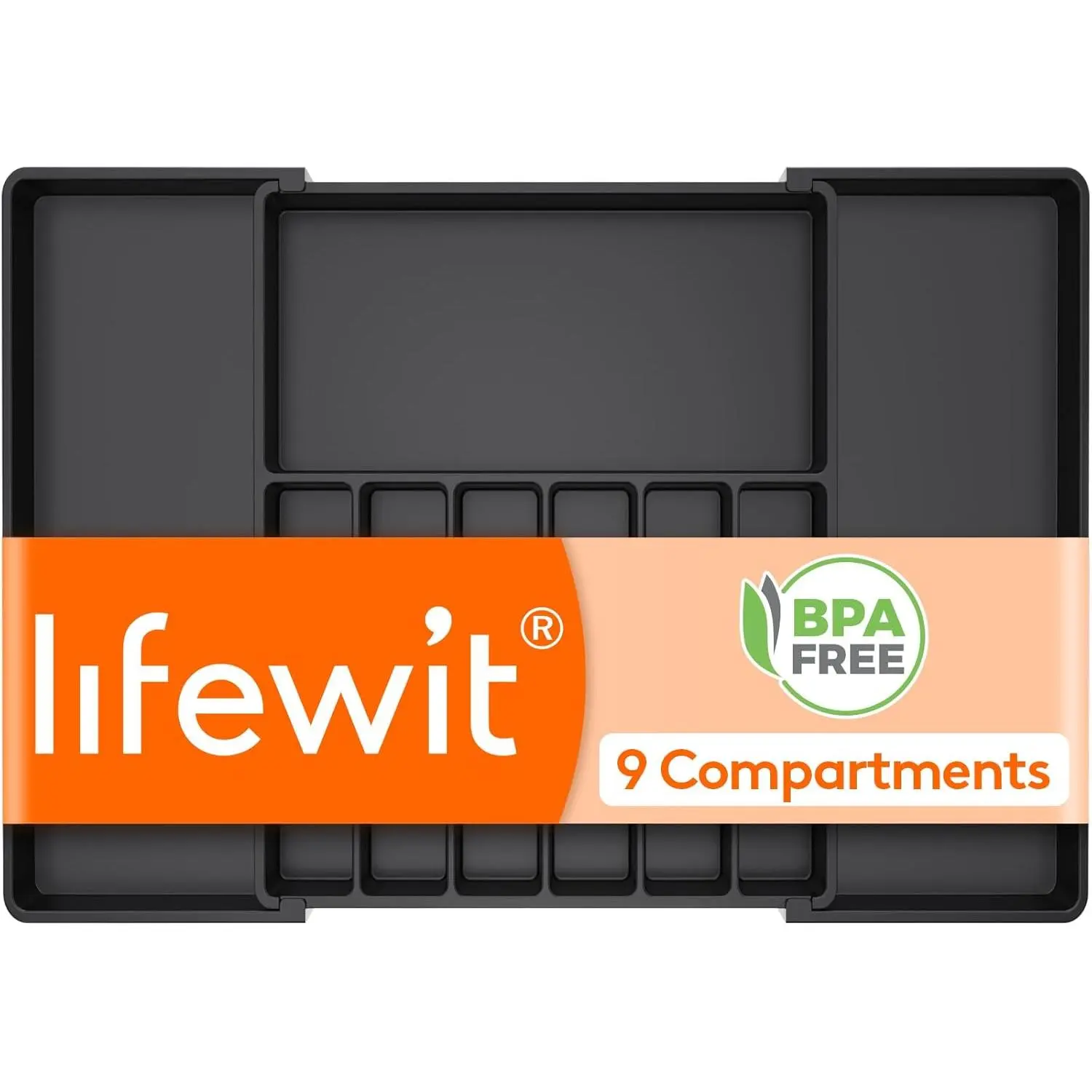 Silverware Drawer Organizer, Expandable Utensil Tray for Kitchen, BPA Free Flatware and Cutlery Holder, Adjustable Plastic Storage for Spoons Forks Knives, 8.5-14 x 12", Black