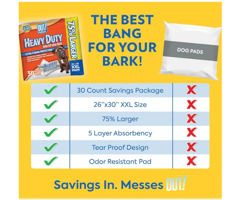 OUT! Petcare Puppy Pads XXL, Heavy Duty, Leak Proof Pee Pads for Dogs, Potty Training & Housebreaking, Puppy Essentials (26"x30", 30 Count)