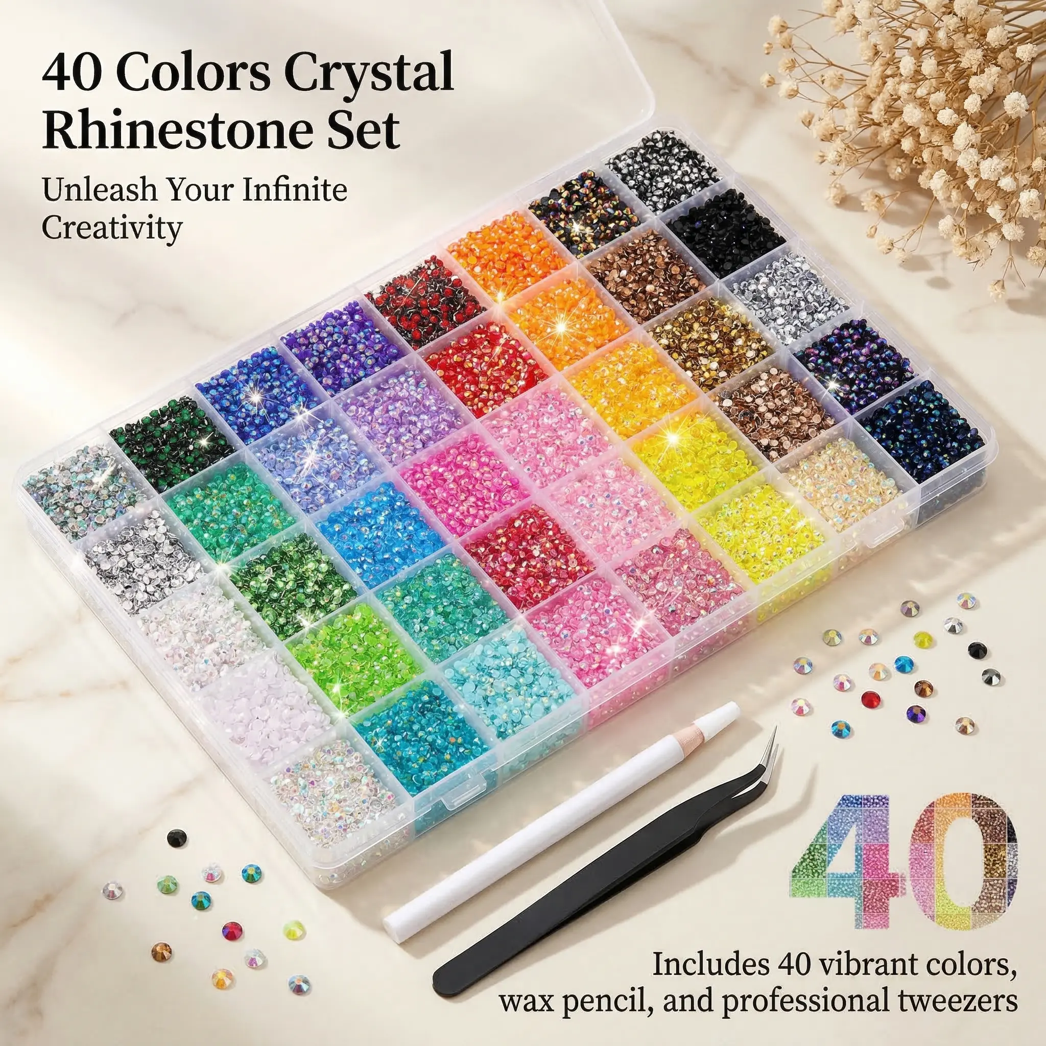 40 Grids Jelly Multicolor SyntheticRhinestones Resin Flatback Beads for Art,Bedazzler Kit for Crafting Book Shoes Nail Art, Bedazzling Kit Flatback with Gifted Tools diamond painting diy jewelry art tool glitter decorative rich color rhinestone gift
