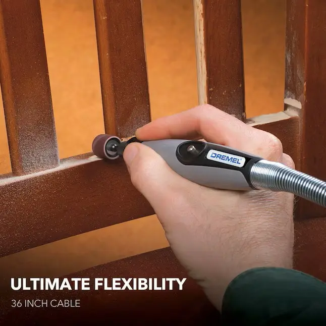 Tight spots, nooks, and corners they're all easily within reach when you add the 225 Flex Shaft attachment to a Dremel Rotary Tool. The Dremel Flex Shaft features a flexible 36-inch cable with a 5-inch bend radius, allowing you to comfortably reach your work in a variety of angles. The ergonomic comfort grip hand-piece reduces fatigue and allows for fingertip control to cut, grind, sand, sharpen, polish and more. The Quick Connect system makes it easy to attach to your compatible Dremel rotary tool.