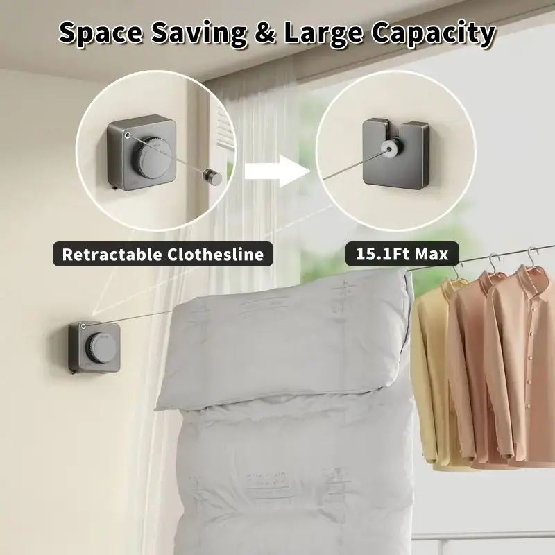 Whether you need to air dry your laundry or hang garments outdoors, this retractable clothesline has you covered with its adjustable length up to 15 Ft. Plus, its rust-resistant construction ensures long-term durability even in outdoor conditions.