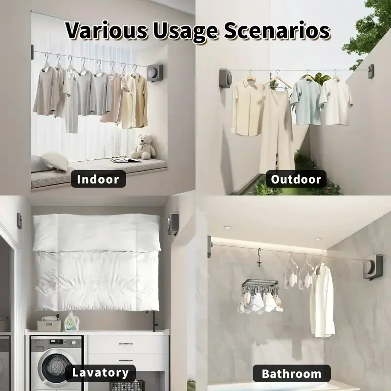 This versatile clothes line features a light green finish that adds a touch of style to your space while offering practical functionality.