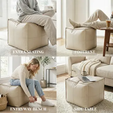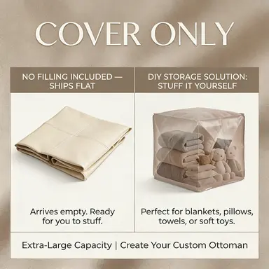 Only 15.7-inch square storage ottoman cover, unfilled faux leather bean bag ottoman, ottoman cover with scratch-resistant, easy-to-clean, and dirt-resistant fabric, suitable for living room, bedroom, apartment sofa footrest