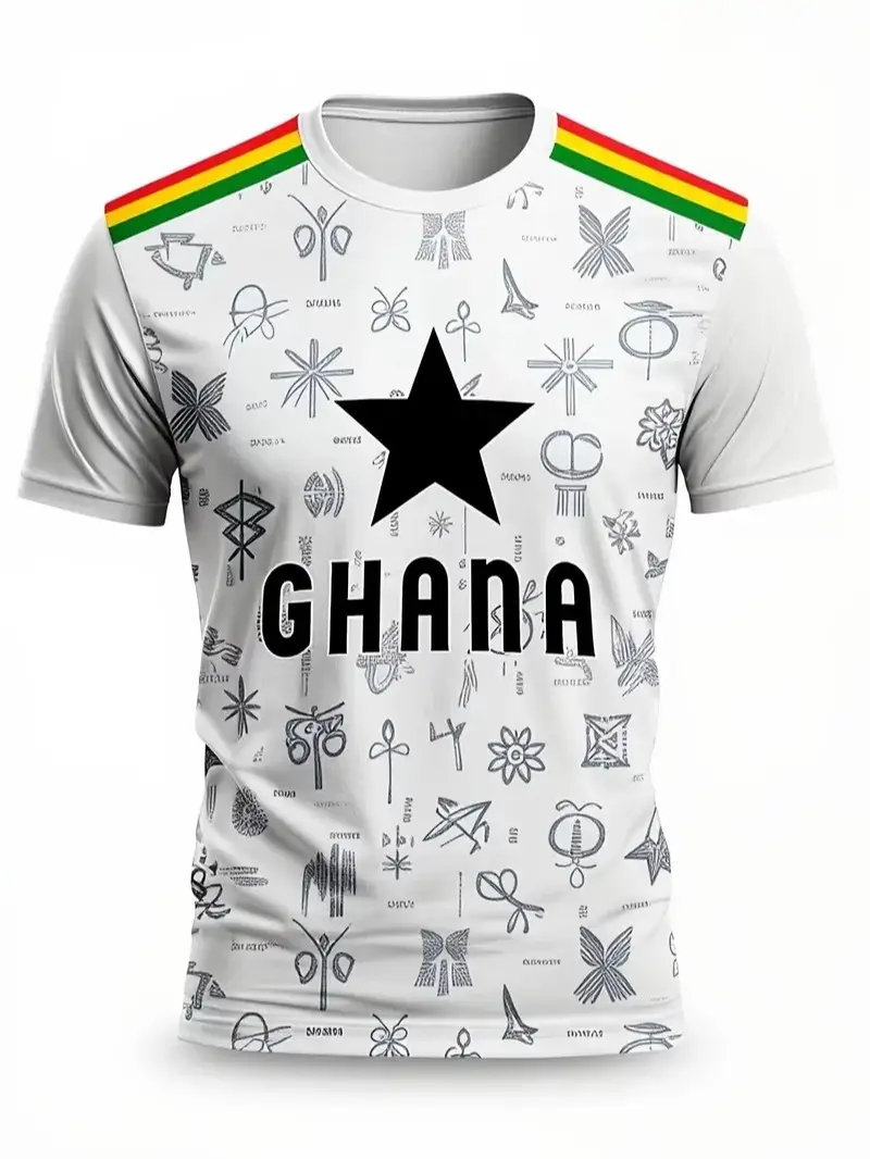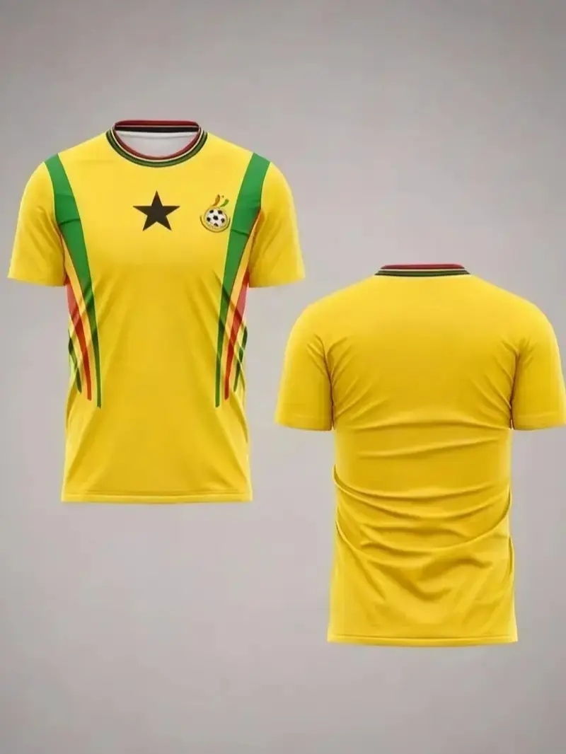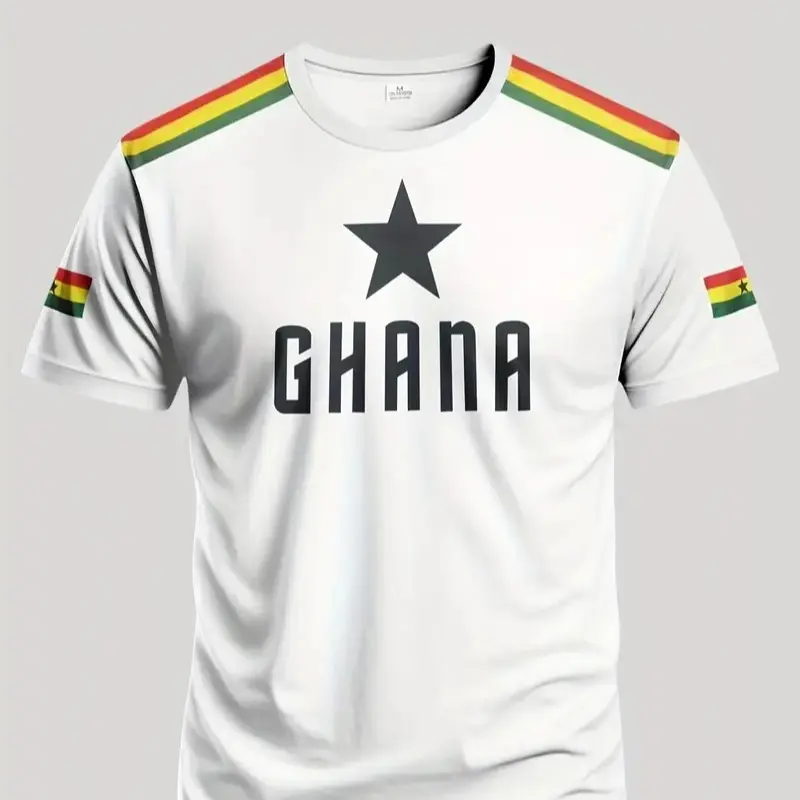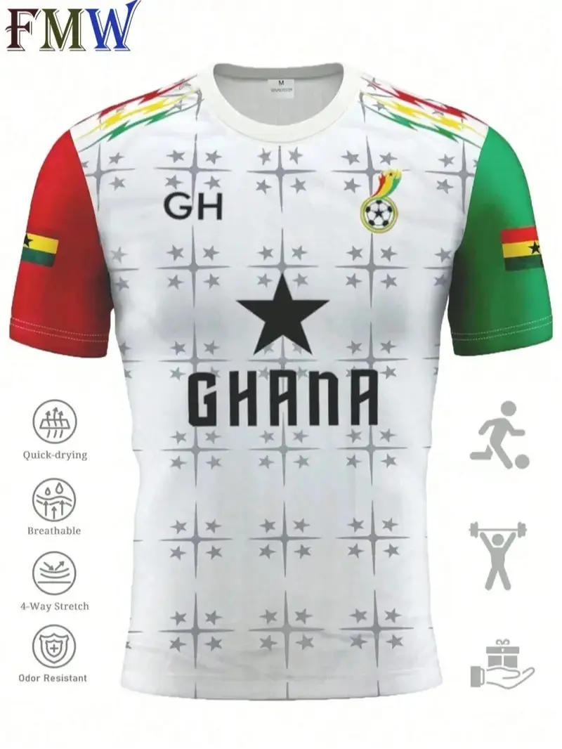 This unisex soccer jersey features the Ghana flag design, making it ideal for athletic and casual outings. The jersey is fitted, ensuring a comfortable fit for various activities. It's perfect for outdoor wear, combining style with functionality.