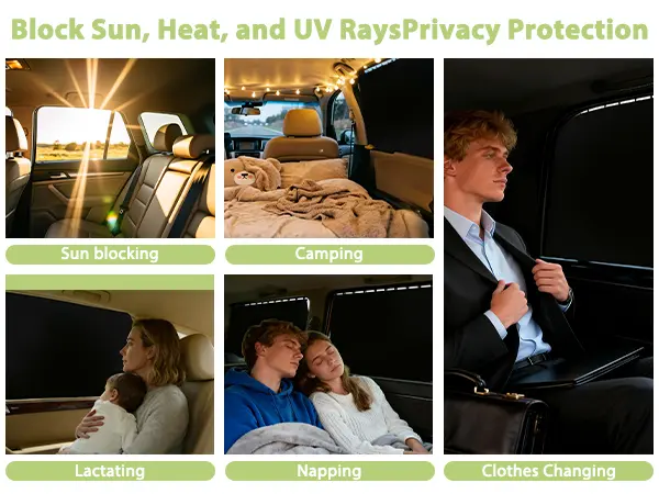 • Privacy & Light Control: Block light and shield against ultraviolet rays. Insulate against heat for a comfortable ride. 🌞