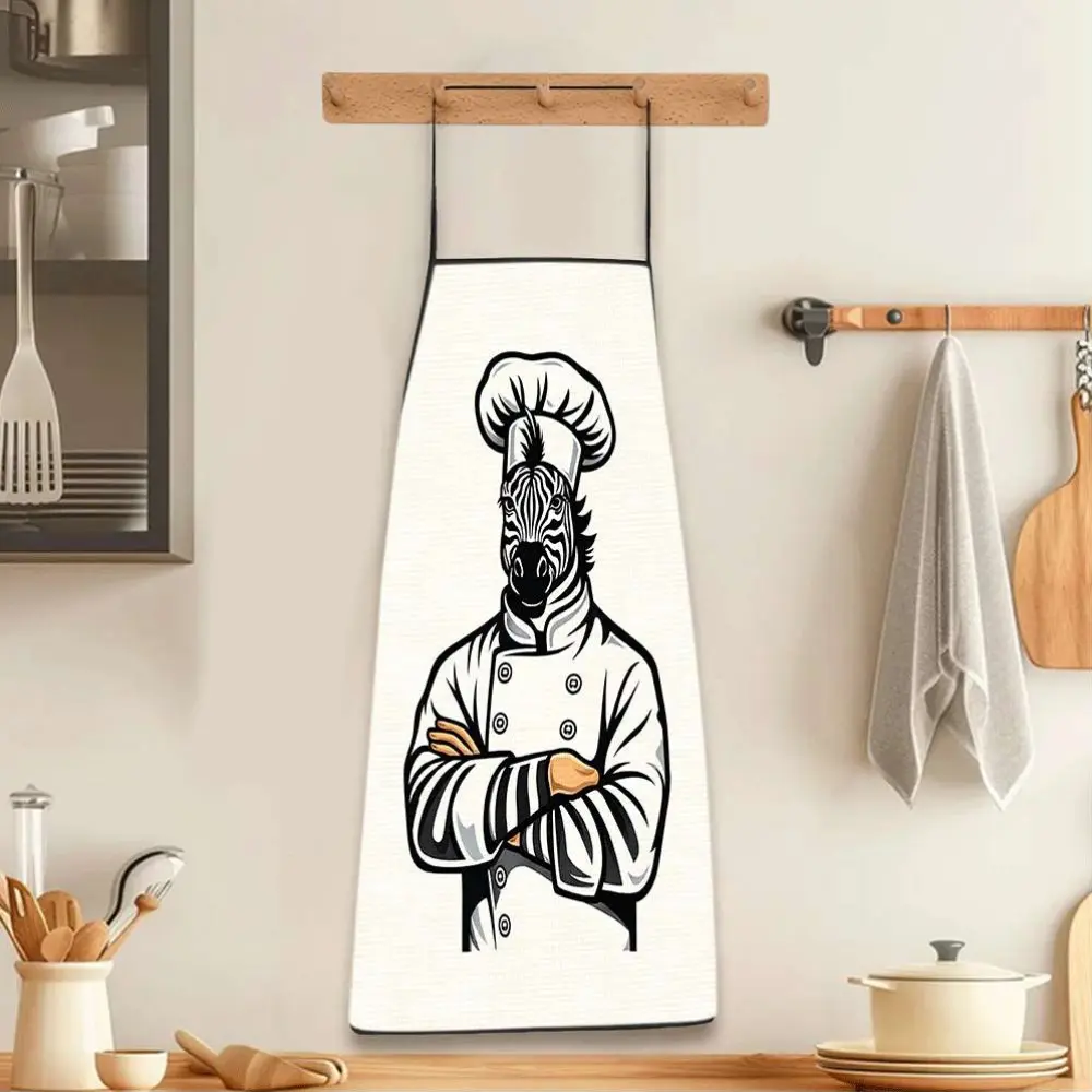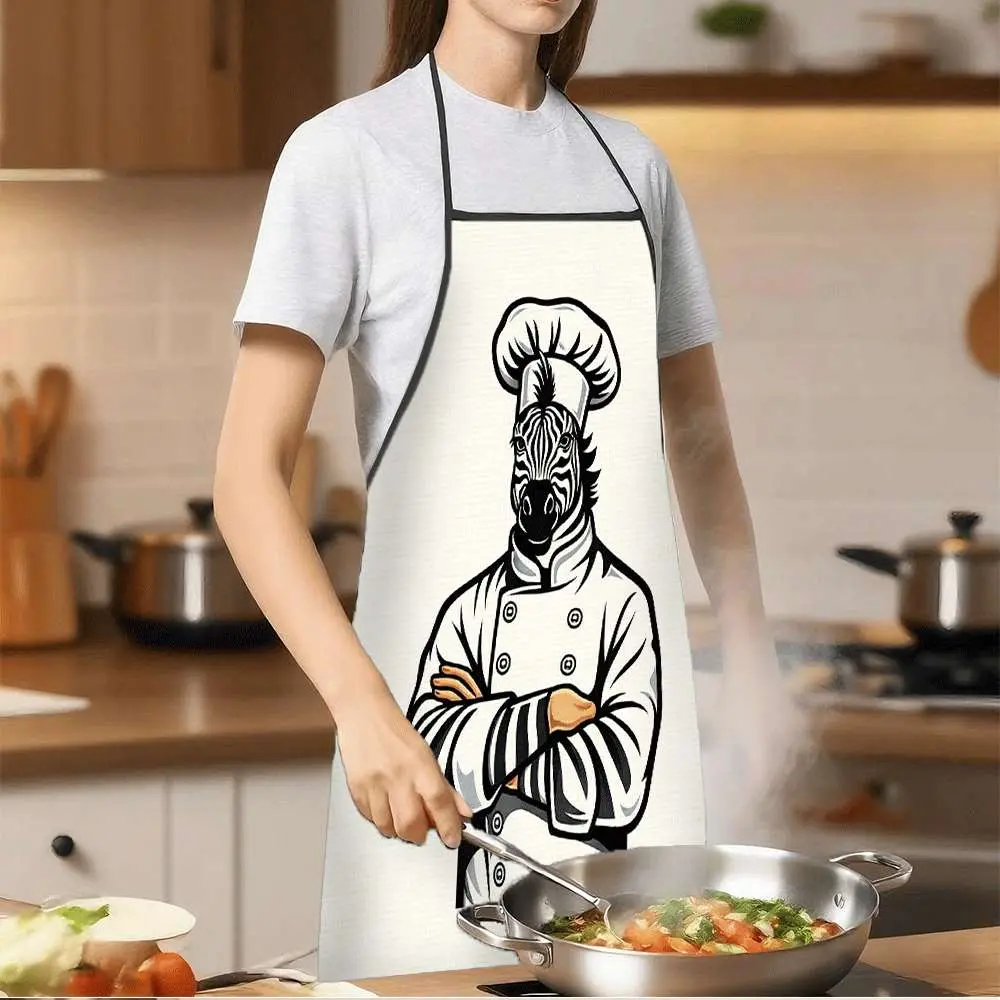 1 humorous zebra print apron, made of durable and easy-to-clean polyester, comes with an adjustable waistband, suitable for cooking in the kitchen, gardening, fruit picking, and can also be purchased for Christmas and Halloween.
