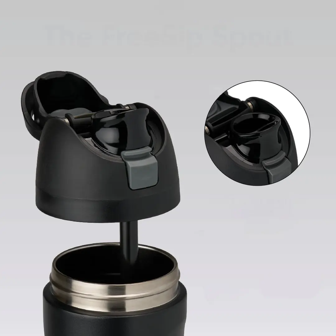 ·Patented FreeSip spout designed for either sipping upright through the built-in straw or tilting back to swig from the spout opening