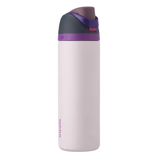 The FreeSip Insulated Stainless-Steel Water Bottle with Locking Push-Button Lid easily tackles every thirst. With a built-in, easy-clean straw and a wide-mouth opening, the FreeSip reusable bottle is designed for drinking two different ways: sipping upright through the straw or tilting back to swig from the wide-mouth spout opening. Add in a push-to-open lid and playful colors, and staying hydrated has never been simpler—or more fun. Additional features include double-wall insulated stainless steel that keeps drinks cold up to 24 hours, a carry loop that doubles as a lock, a cup holder-friendly base, and a wide opening for easy cleaning and adding ice. The Owala FreeSip Insulated Stainless-Steel Water Bottle with Locking Push-Button Lid is available in three sizes: 24-Ounce, 32-Ounce. Lid is dishwasher safe; hand wash cup. Not for use with hot liquids. Manufacturer’s limited lifetime warranty.