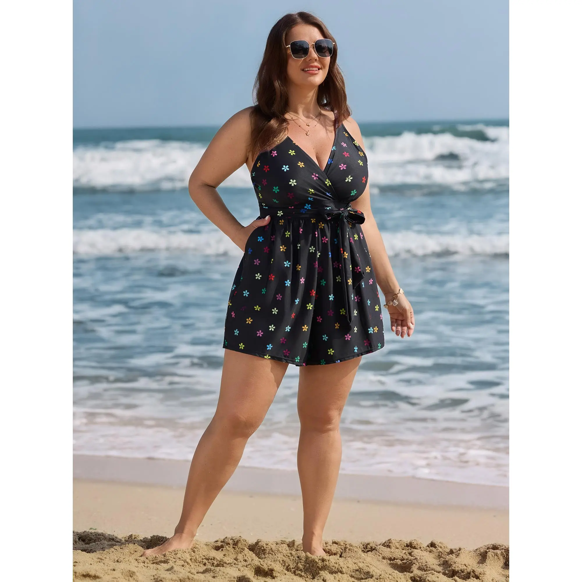 5. 【Summer Turn-Up】【Tummy Control】BLOOMCHIC Plus Size Floral Non-Removable Belt One-Piece Swimsuit [M-6X] 2026 Summer Pick for Mother's Day