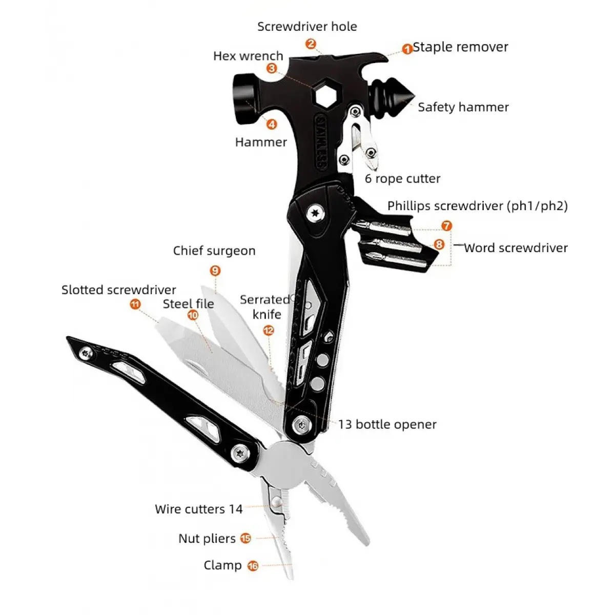 Multifunctional Hammer Pliers Adjustable Wrench Tool for Home Repair Outdoor Camping and Emergency Survival Gear with Portable Durable Design