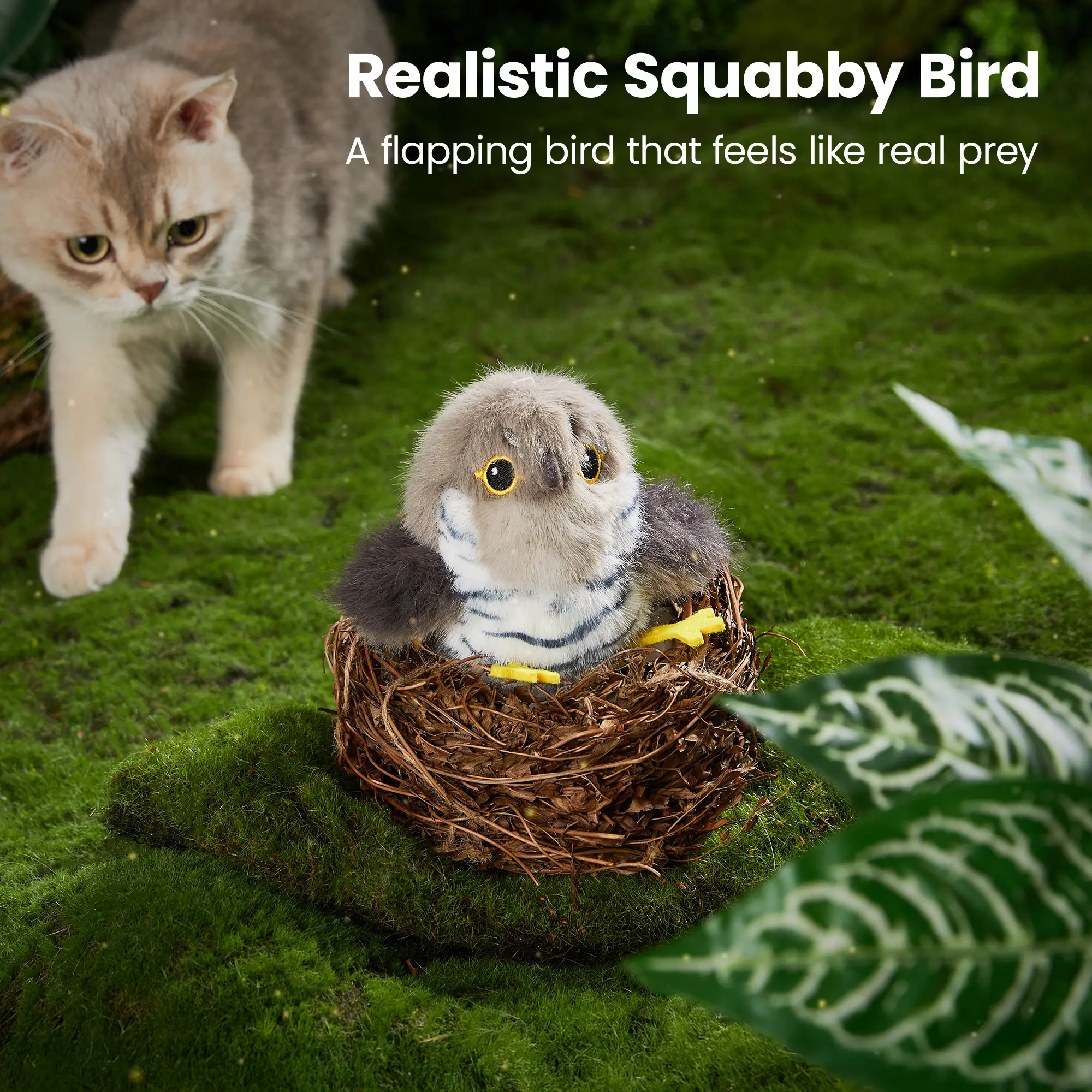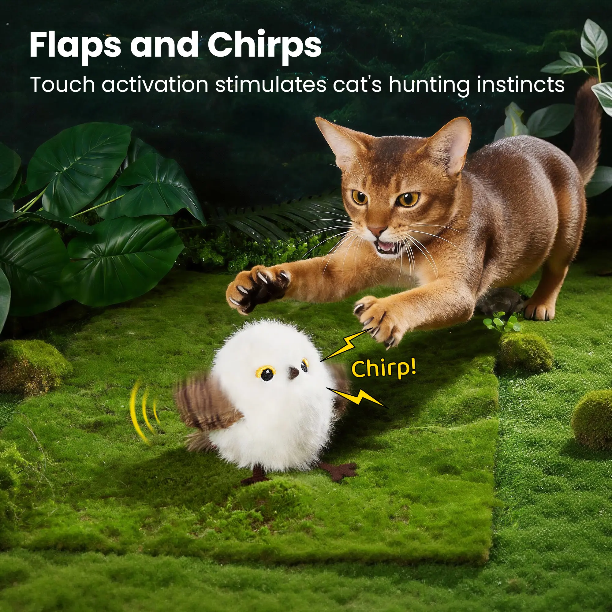 Real Bird Chirp Sounds: Built with sound simulation technology, the fluffy toy produces lifelike chirping sounds when touched. The vivid audio and fluttering motion trigger your cat’s hunting instincts, bringing hours of self-play entertainment.