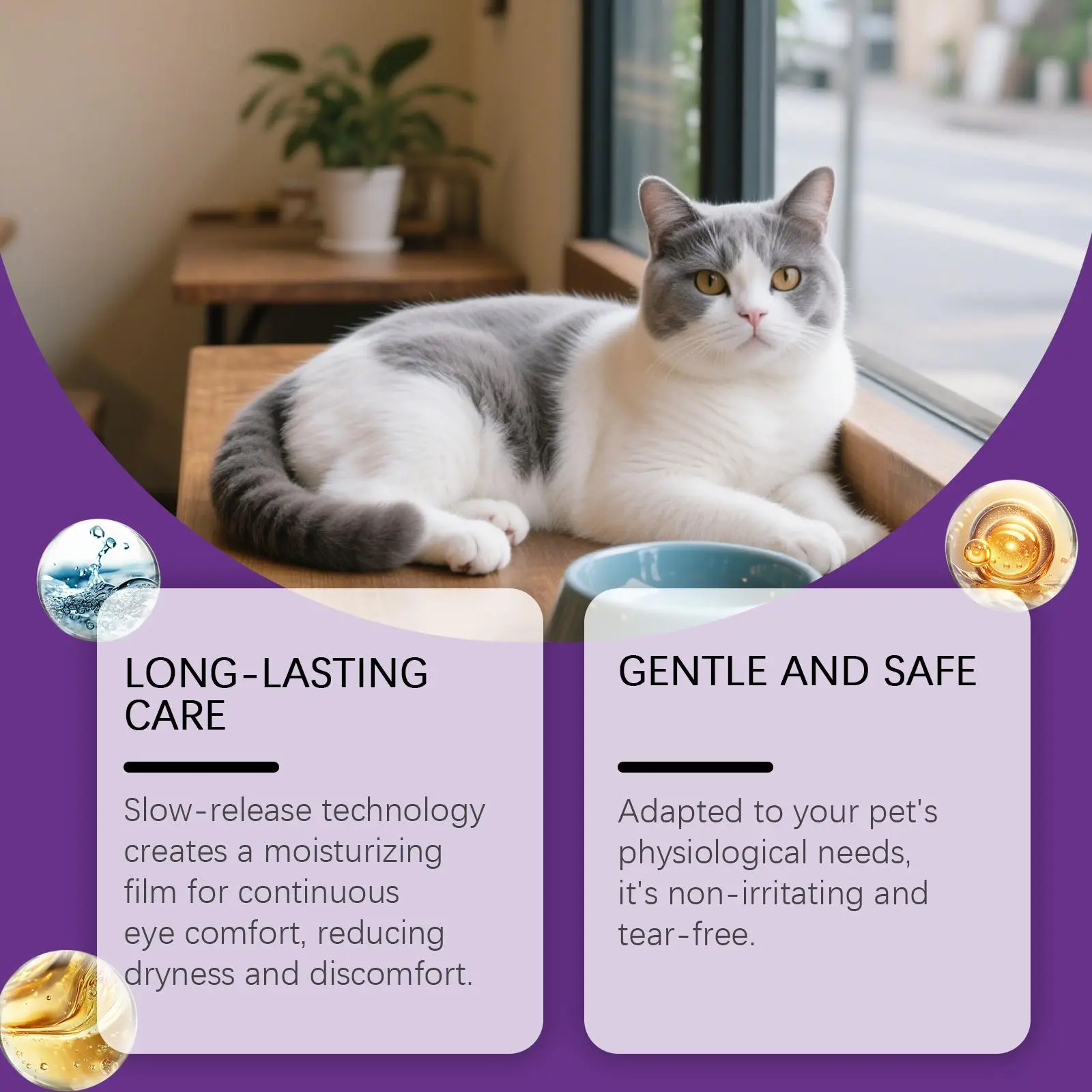 Our pet eye tear relief ointment is carefully formulated with hyaluronic acid and mint leaves. It is specially designed to provide continuous comfort to the eyes, reducing dryness and discomfort. The application method is extremely convenient: clean and dry the skin around the eyes. Open the cap and directly apply the ointment to the eyelids of your pet. And it is suitable for the physiological needs of the pet, as it does not irritate and is tear-free.