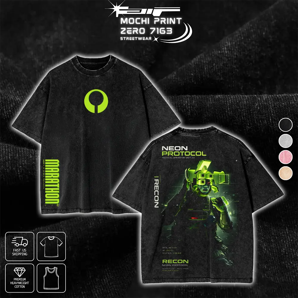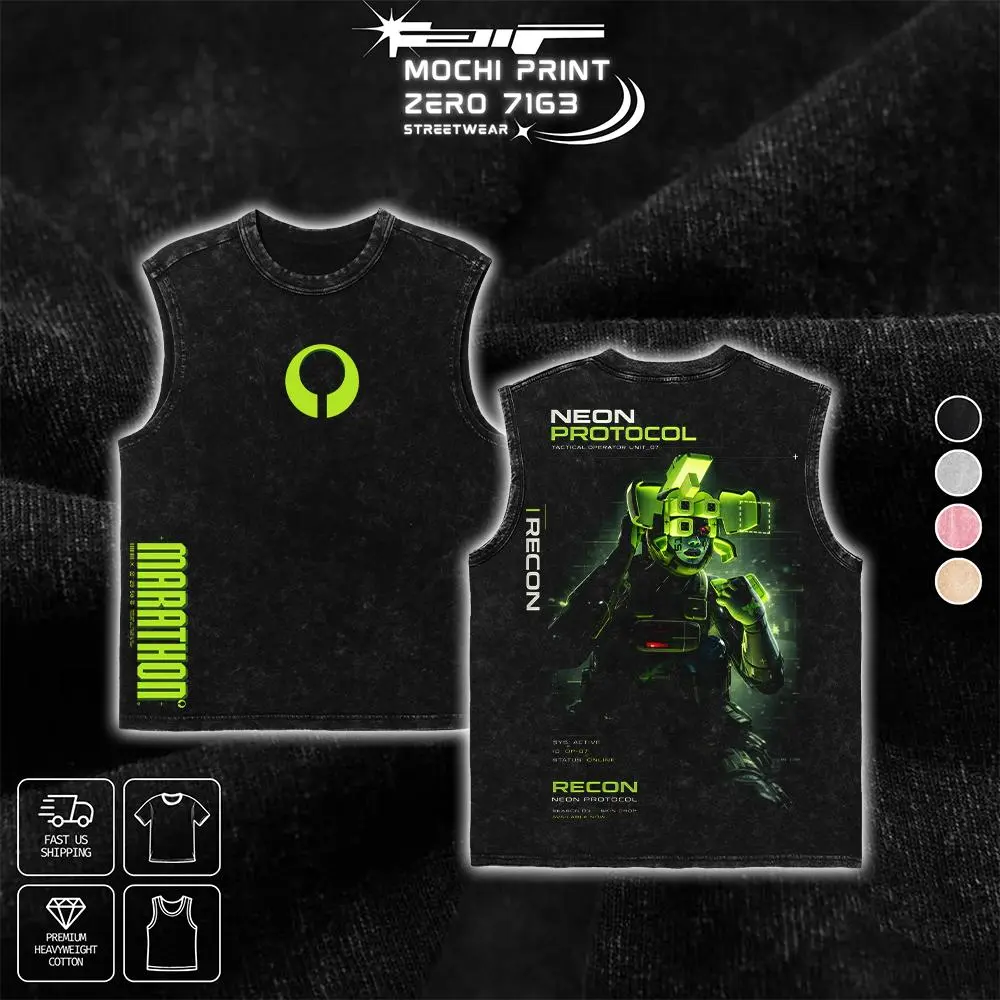 Limited Recon Neon Protocol Marathon Graphic T-shirt Sci-Fi FPS Game Crewneck Sweatshirt Hoodie Tank Top Streetwear 100% Cotton Oversized Gaming Fan Gift Heavyweight Aesthetic Washed Print Unisex Top