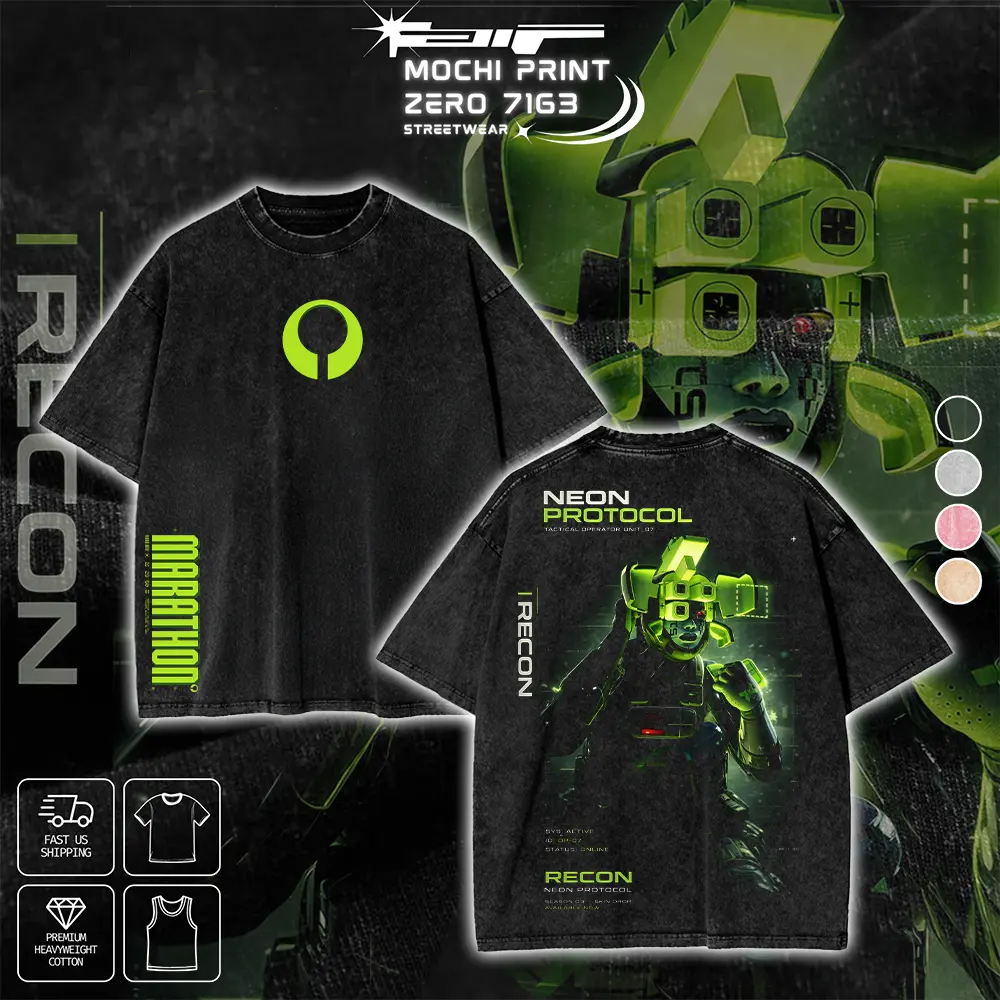 5. Limited Recon Neon Protocol Marathon Graphic T-shirt Sci-Fi FPS Game Crewneck Sweatshirt Hoodie Tank Top Streetwear 100% Cotton Oversized Gaming Fan Gift Heavyweight Aesthetic Washed Print Unisex Top