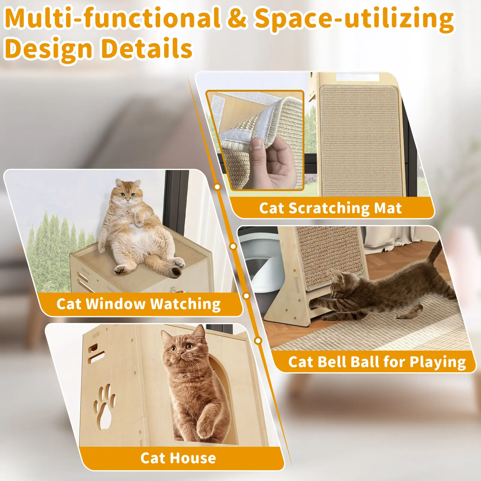 Cat Tree, Cat Window Perch with Scratching Pad, Climbing TreeInclude Hammock Cat Ladder with Cat House, Cat Treewith Cat Playing Balls and Grooming brushes