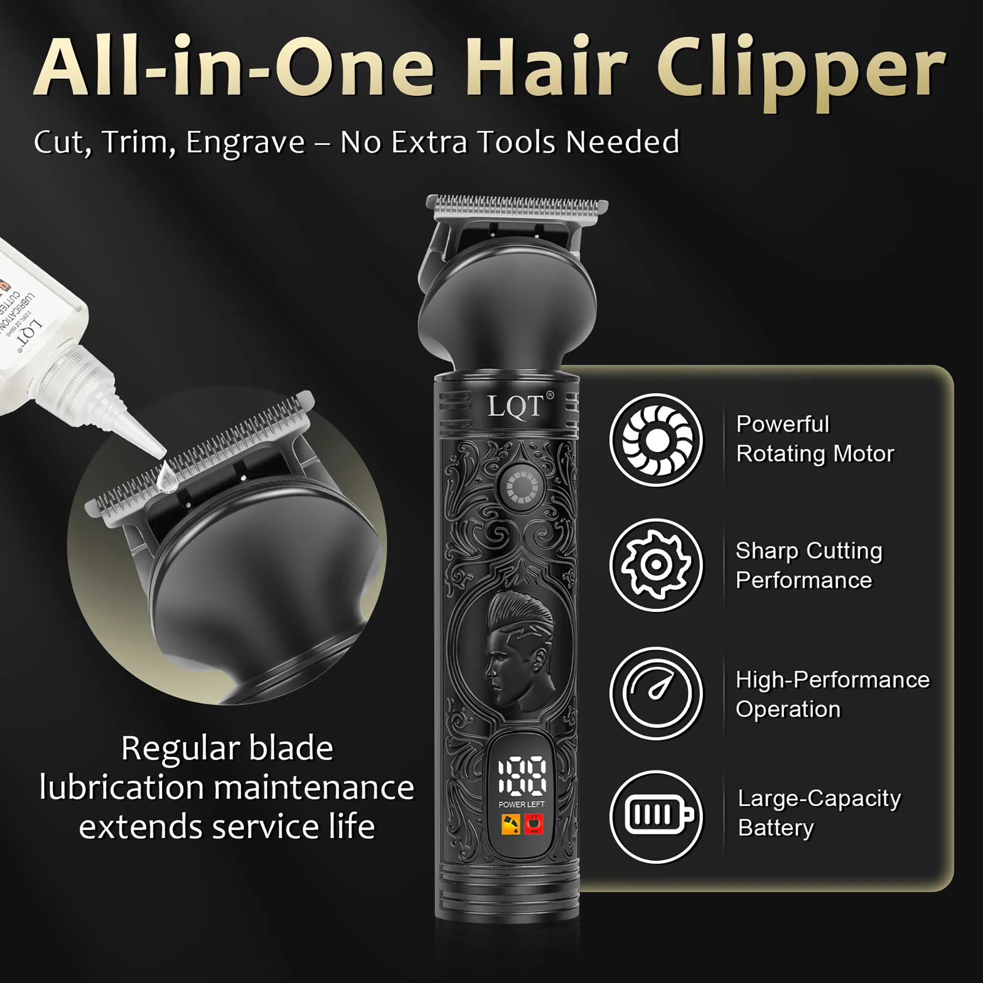 This premium all-in-one grooming set features a vintage engraved design, paired with 10 interchangeable heads to handle every part of your routine: precise haircuts, fades, beard edging, nose/ear hair trimming, and close shaving.