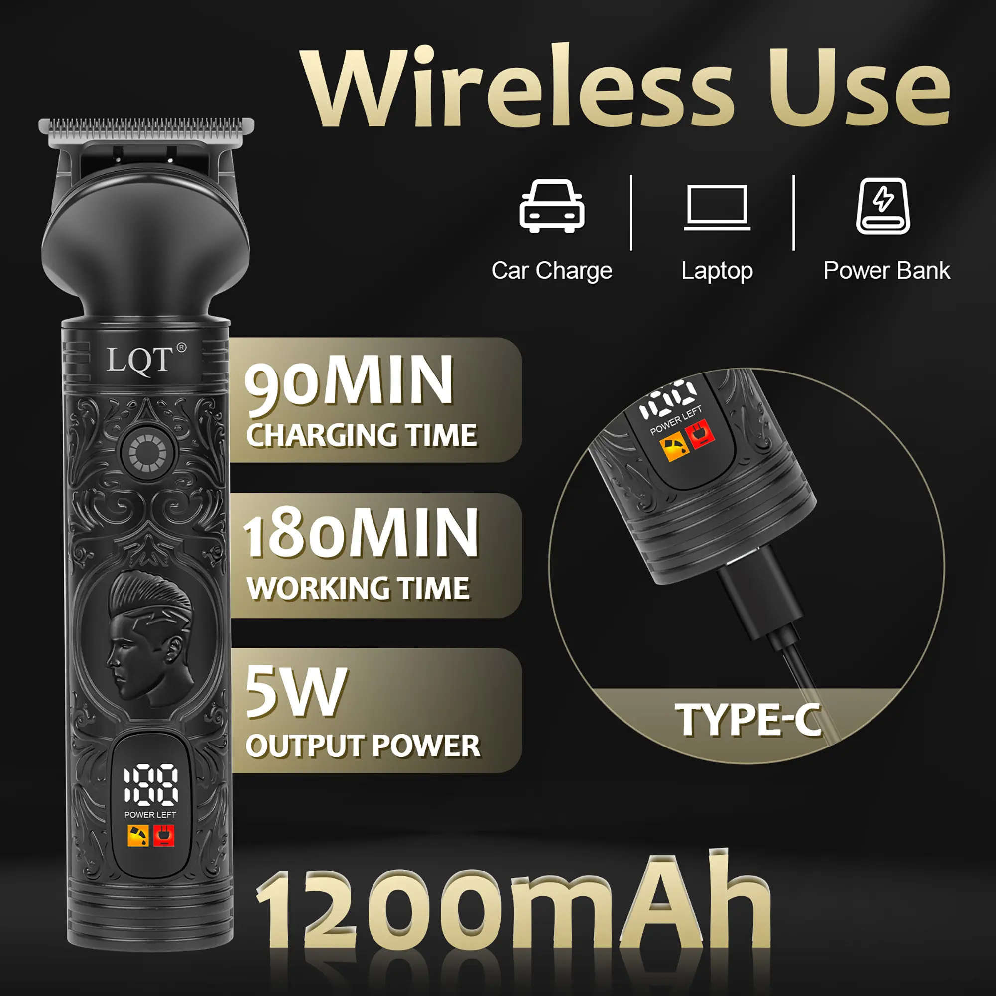 The built-in LCD display clearly shows battery life, so you never run out of power mid-groom, and the included charging base keeps everything organized and ready to use. The kit comes fully loaded with all barber essentials: multiple guide combs for customizable lengths, all trimming heads, a cleaning brush, and a USB charging cable.