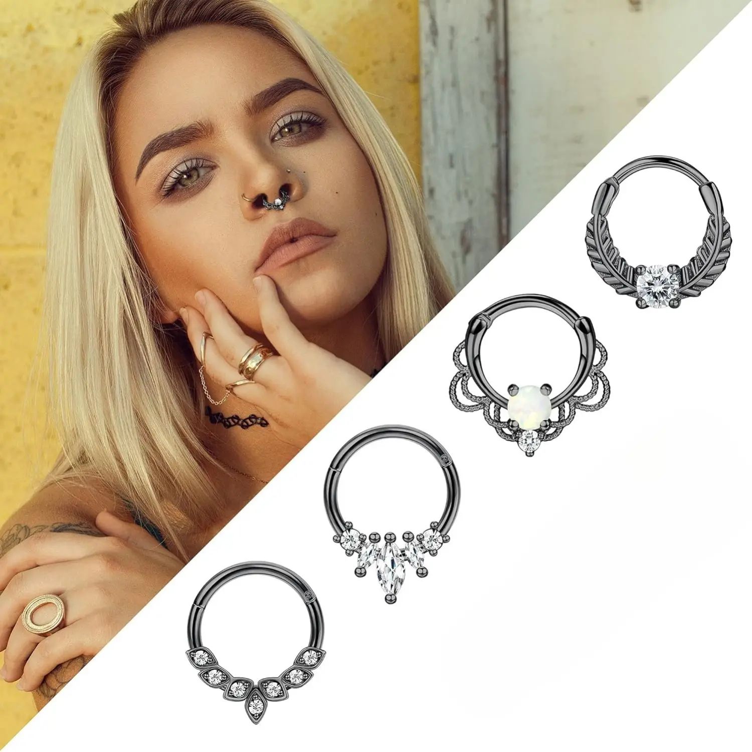 ·One Ring, Many Ways: Style it as a Septum ring, Daith earring, Helix hoop, Tragus piercing, or even a Lip ring.