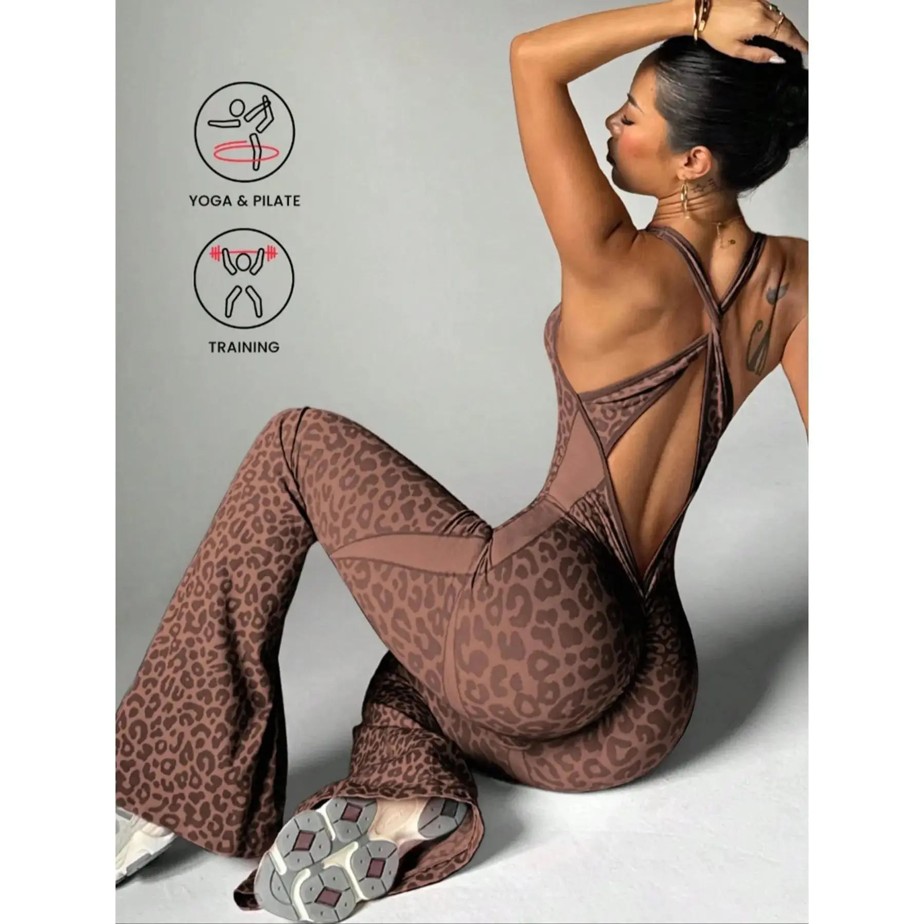 Women's Seamless Leopard Print Tank Jumpsuit, Back Cross Buckle High Waist Butt Lifting Jumpsuit, Ideal for Running Outdoor Yoga Workout, Sportswear woman summer outfit sporty boy short