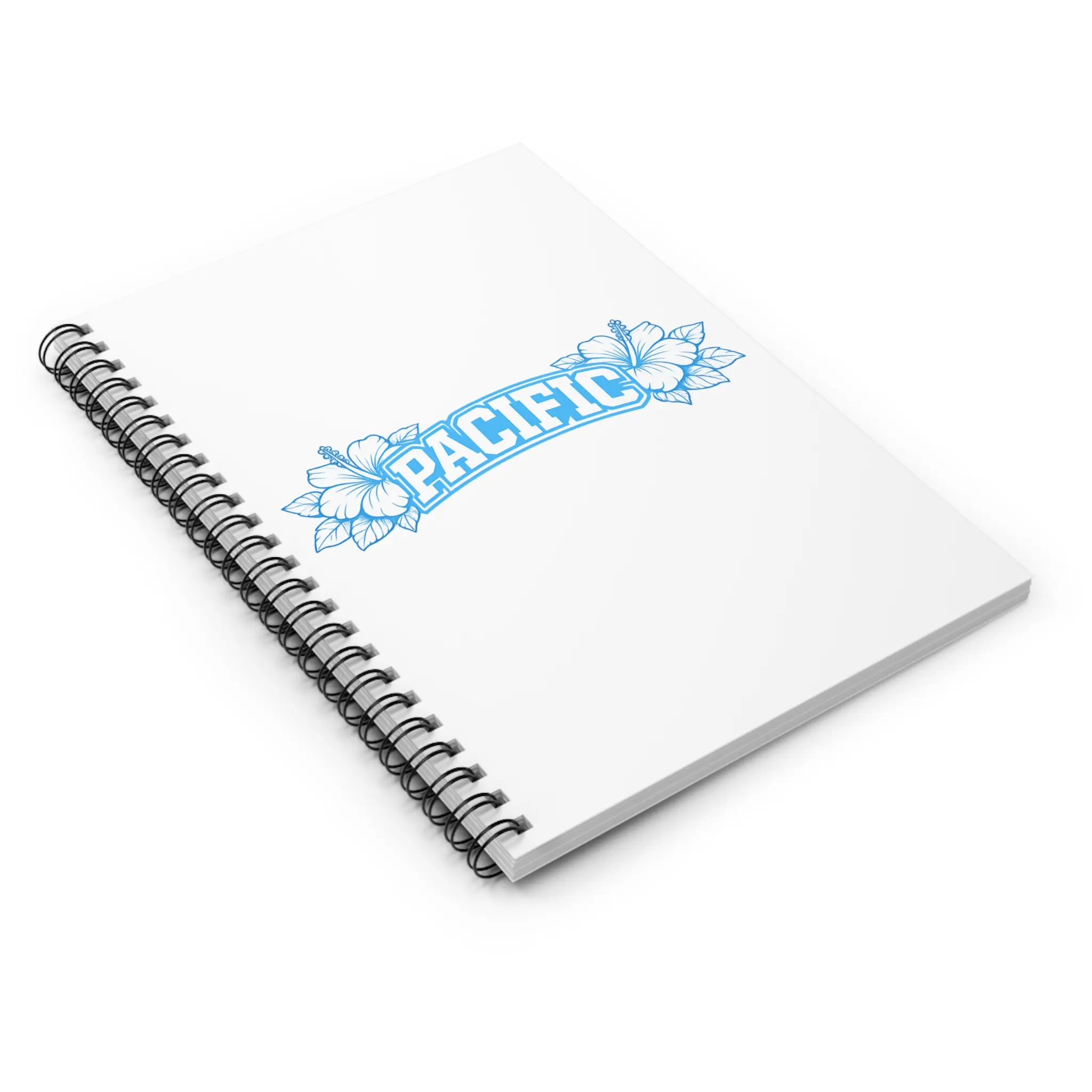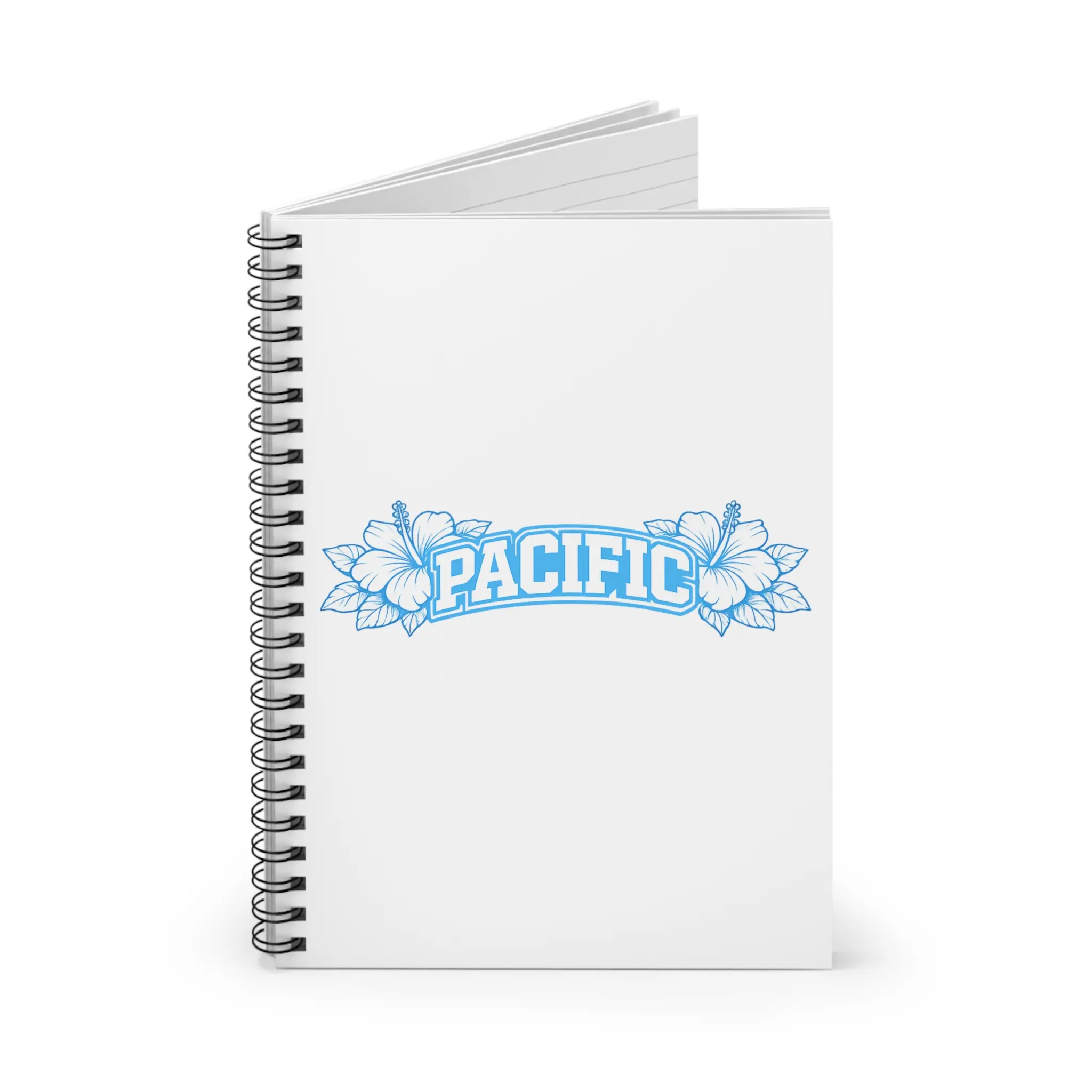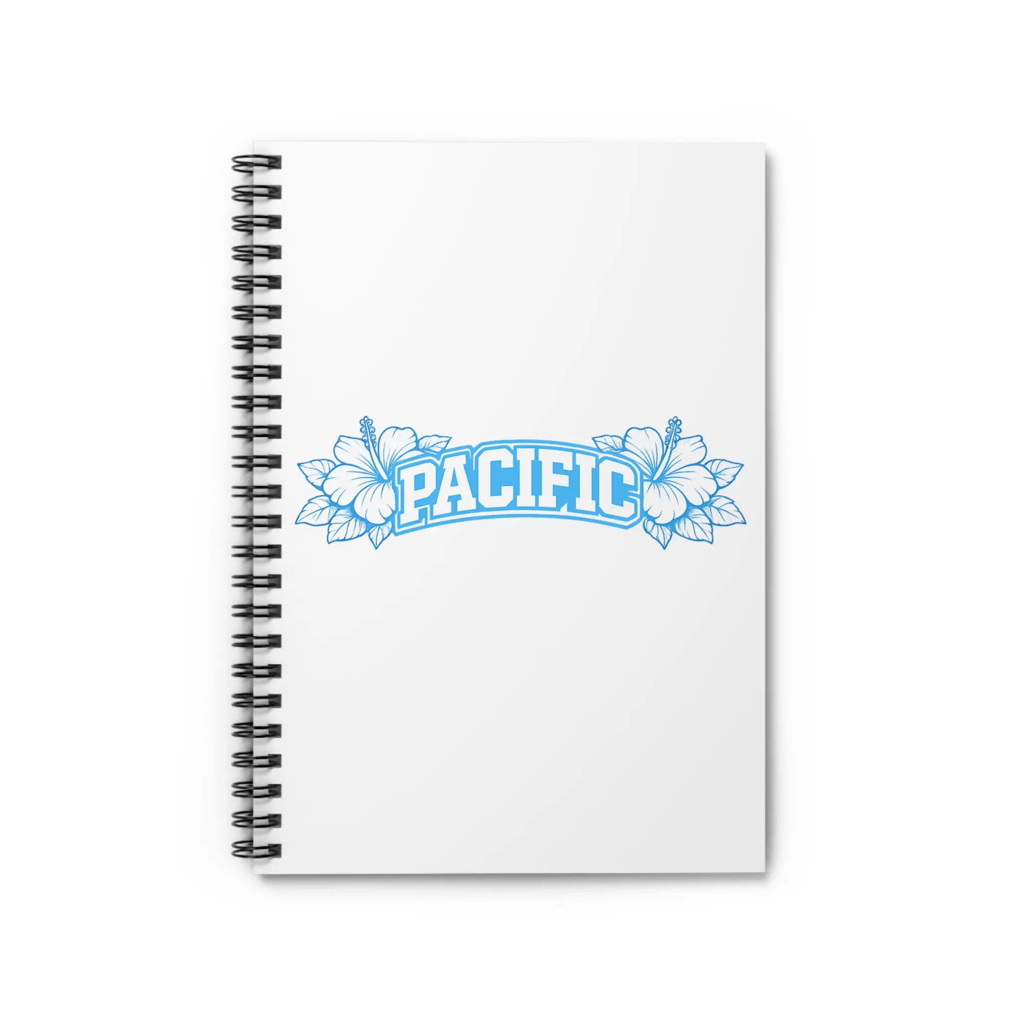 A clean, coastal-inspired spiral notebook that invites you to capture ideas, lists, and plans with calm clarity. The white front cover features a soft blue “PACIFIC” banner framed by delicate hibiscus line art — a quiet nod to seaside mornings and salt-scented breeze. Inside, smooth ruled pages (90 gsm) guide your thoughts while a sturdy metal spiral lets the notebook lie flat or fold back for easy writing. A document pocket on the inside back cover keeps loose notes, receipts, or inspiration safe. Sized at 6" x 8", it slips into backpacks and tote bags for daily carry and creative bursts on the go.