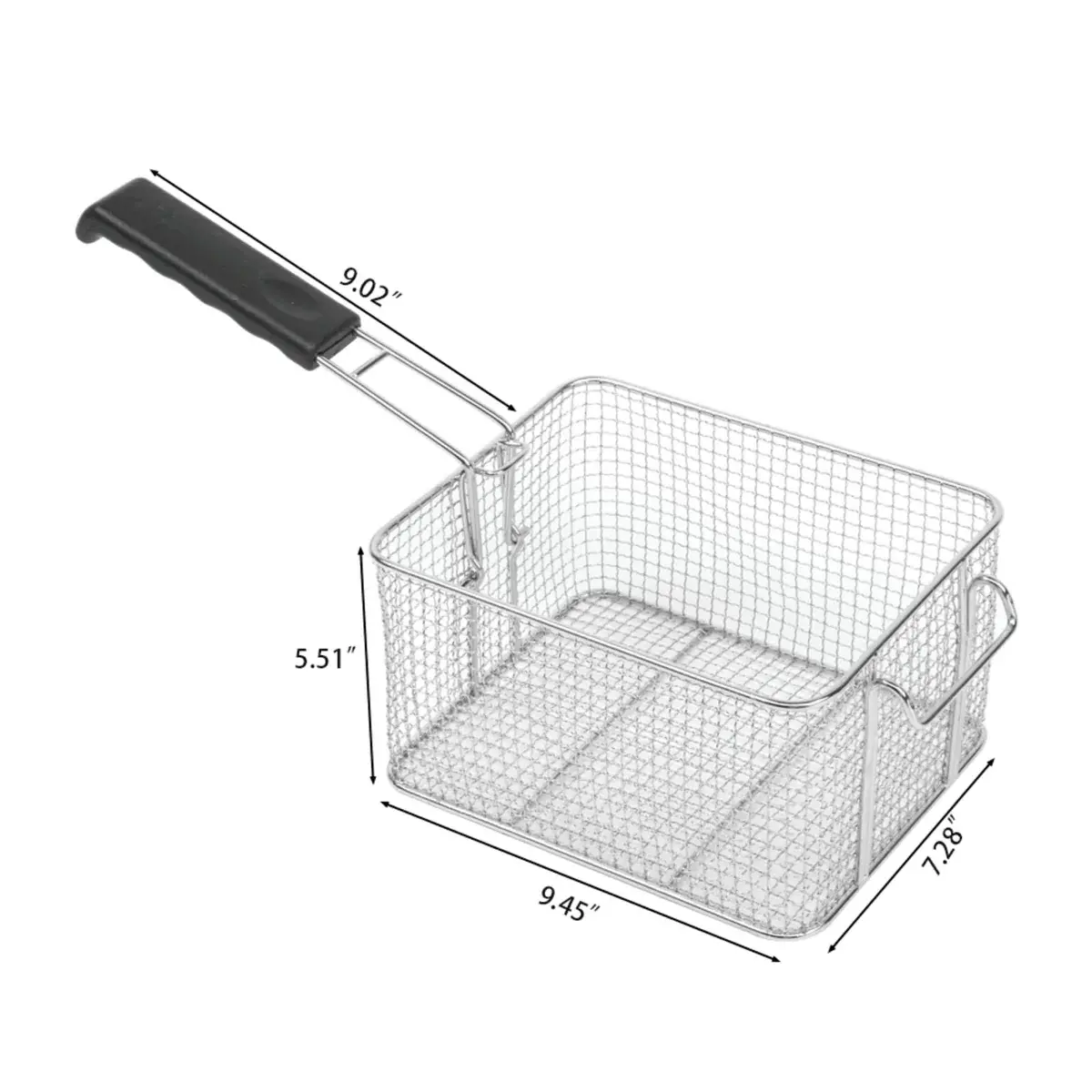 Comes with a lid for preventing oil splashing and a frying basket with plastic handle for protecting hands from being scalded.