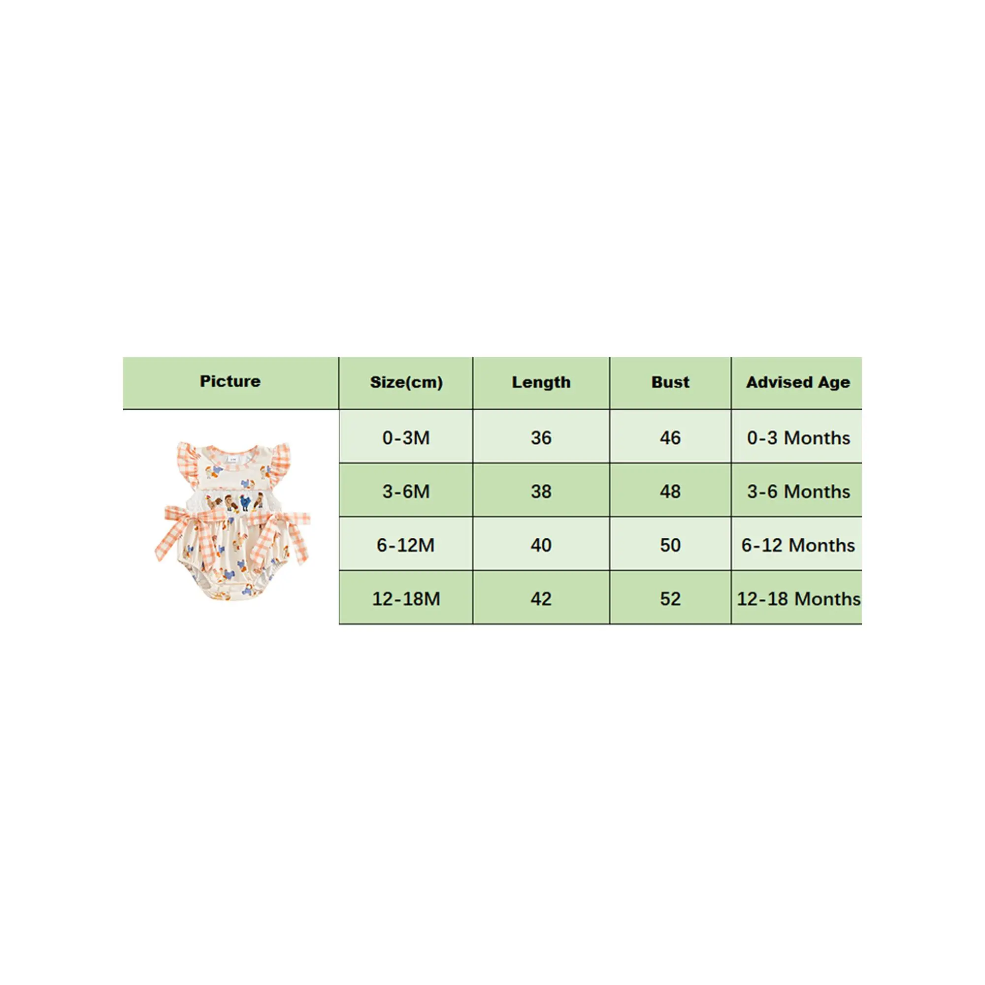 0-3M Length: 14.17 Bust: 18.11 Advised Age: 0-3 Months
