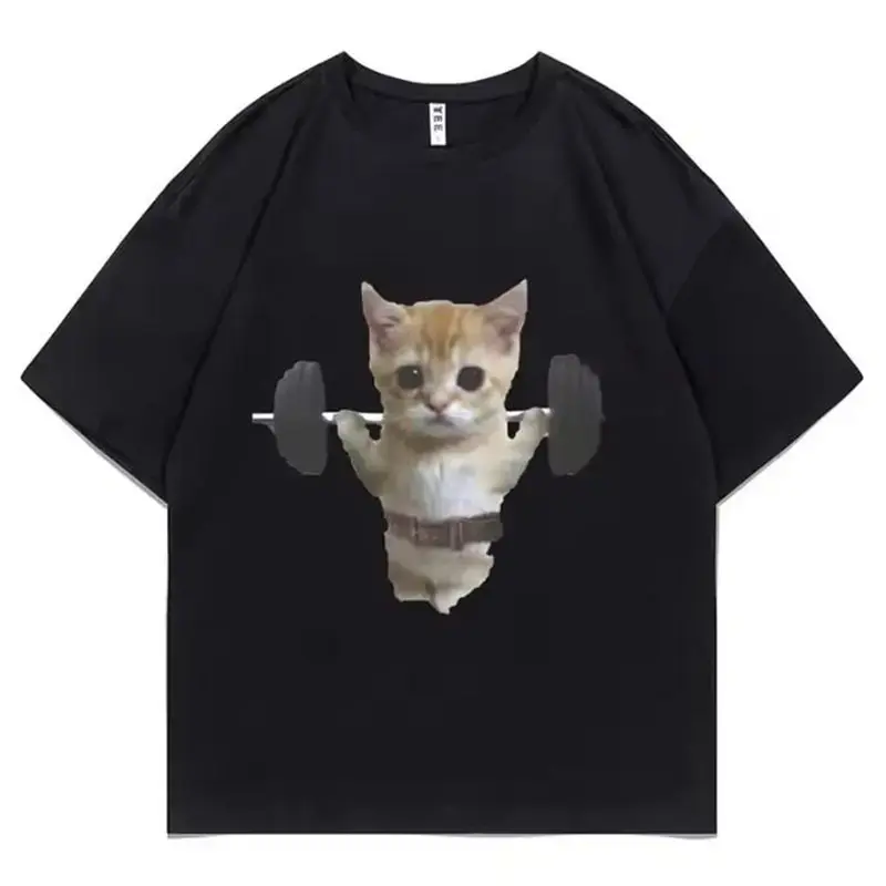 5. Funny Sam Sulek Cat Gym Meme T-Shirt, Oversized Fitness Pump Cover Graphic Tee for Men & Women