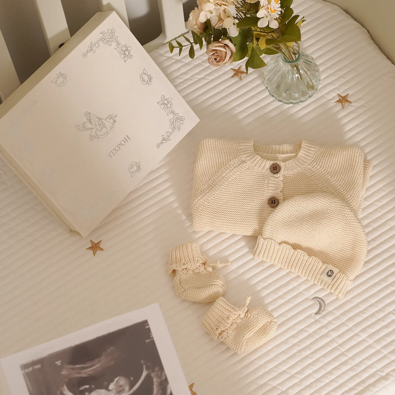 ·Packing : 3-PIECE SET.Includes knit one piece sweater and coordinating beanie and booties .The sturdy box makes this really giftable.Perfect for hospital photos, baby’s announcement photos,baby shower,birthday ,holidays, or hospital coming home .