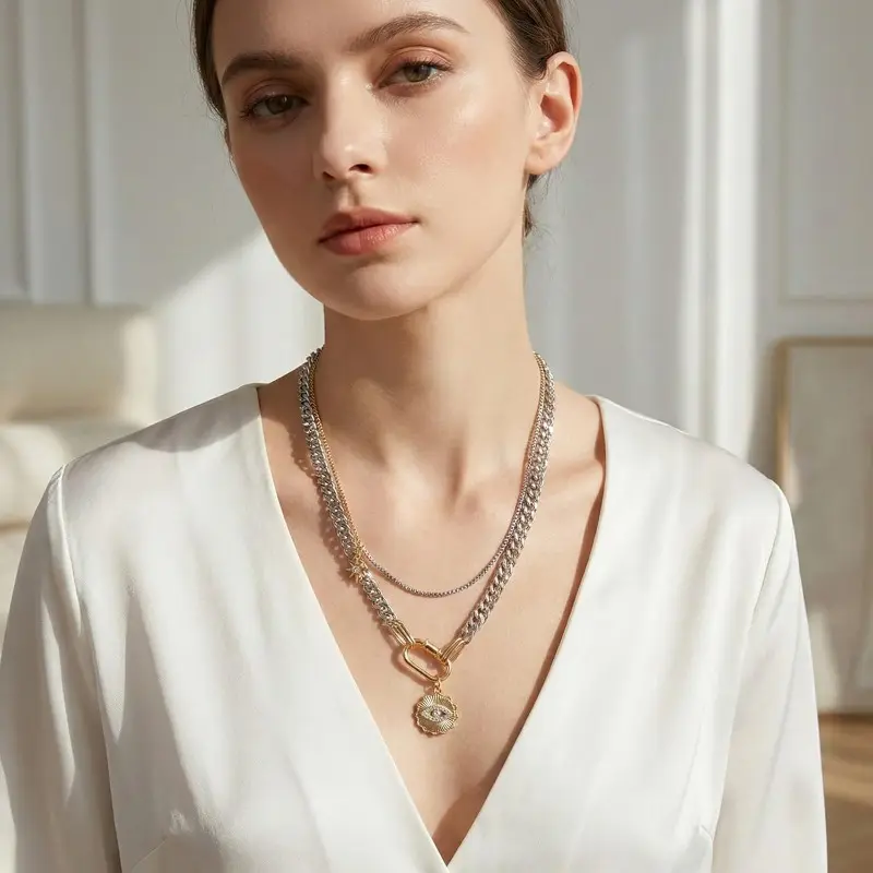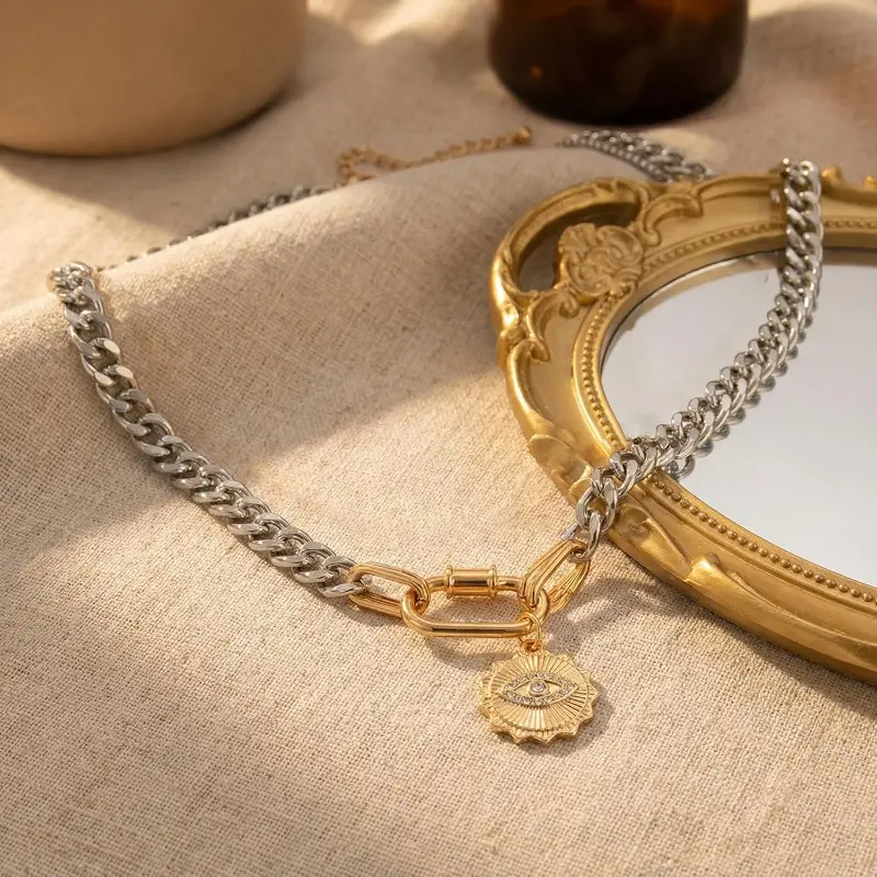 Versatility is everything. This two-tone design blends the classic warmth of gold with the sleek edge of silver. It's not just a necklace—it's the bridge that connects all your accessories, giving you the freedom to mix and match with ease.