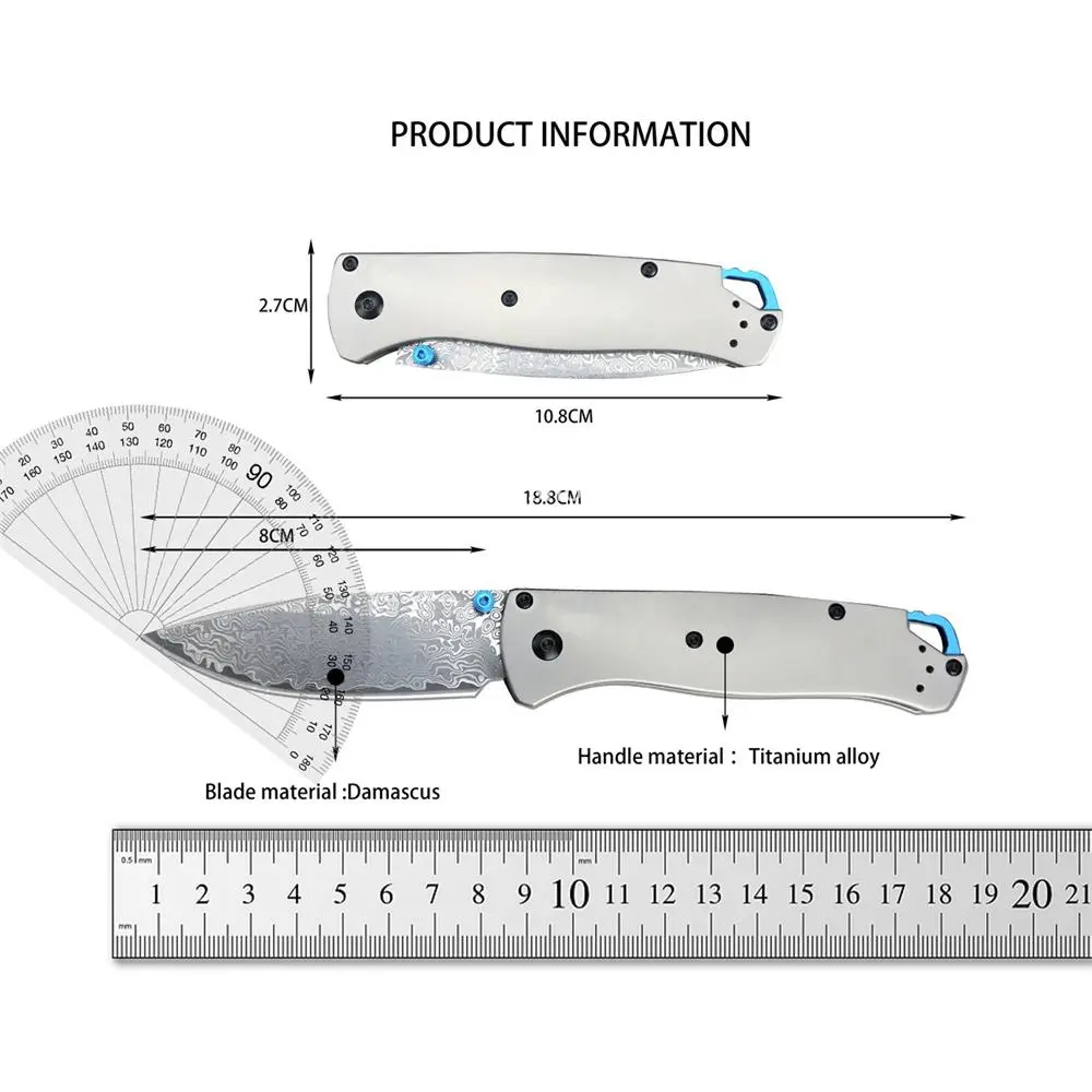 3.14 Inch High-End Titanium Handle Damascus Blade Outdoor Folding Knife Durable and Lightweight for Camping and Traveling Collectible EDC Tools Subtle Gifts for Men
